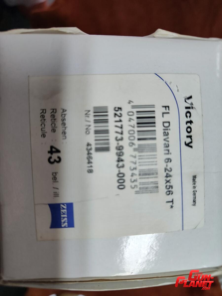 Mira telescopica ZEISS VICTORY FL DIAVARI 6-24X56 T*, nueva, SIN USO, Reticulo 43 ILUMINADO Mil Dot.Tubo de 30MM. GRAN CAPTAC. DE LUZ . Corrector de paralaje 50 m. - infinito, protecc. Con recubrimiento Lotutec , ASV . Germany auténtica. Caja, con sus accesorios. Montajes no incluidos, a convenir según la operación.