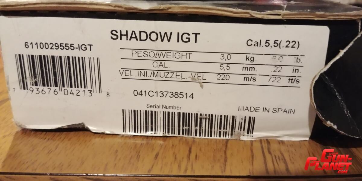 Rifle de aire comprimido Gamo, mod. Shadow igt cal. 5.5 nitro pistón, con mira Gamo 4x32, sin uso, impecable, en caja, con balines de regalo.