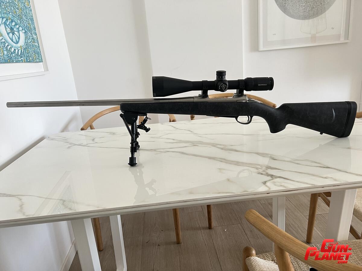 Fusil de caza solo una caja de balas. Tiro. Cal 458 WM miras abieras "librito". Guión fresado detalles en ébano único listo para ir a África