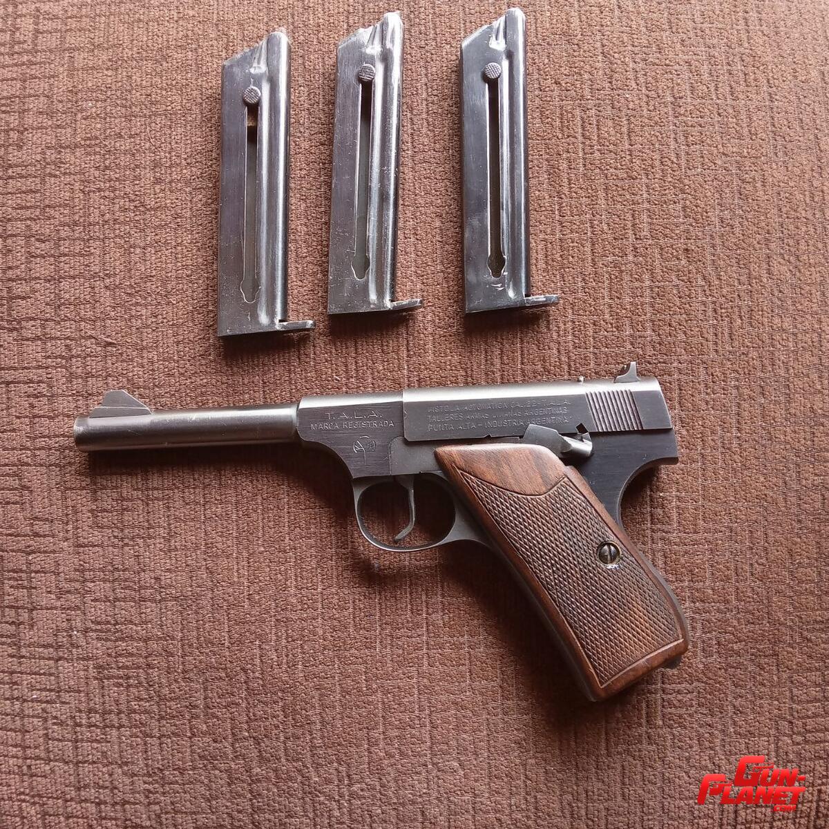 Vendo pistola TALA, en excelente estado, comprada 0 km por mi padre. Tiene su caja y manual original. Va con 3 cargadores, como se ve en la foto dos tienen una teja adaptada porque las originales de aleación (zamak) se rompieron, sorprendentemente con la adaptación andan bien (buscando se consigue la teja original o se puede reemplazar con una 3D). Están las cachas originales. La pistola es muy precisa y es toda de acero. De lo mejor de la industria nacional. Respondo dudas a la brevedad.
