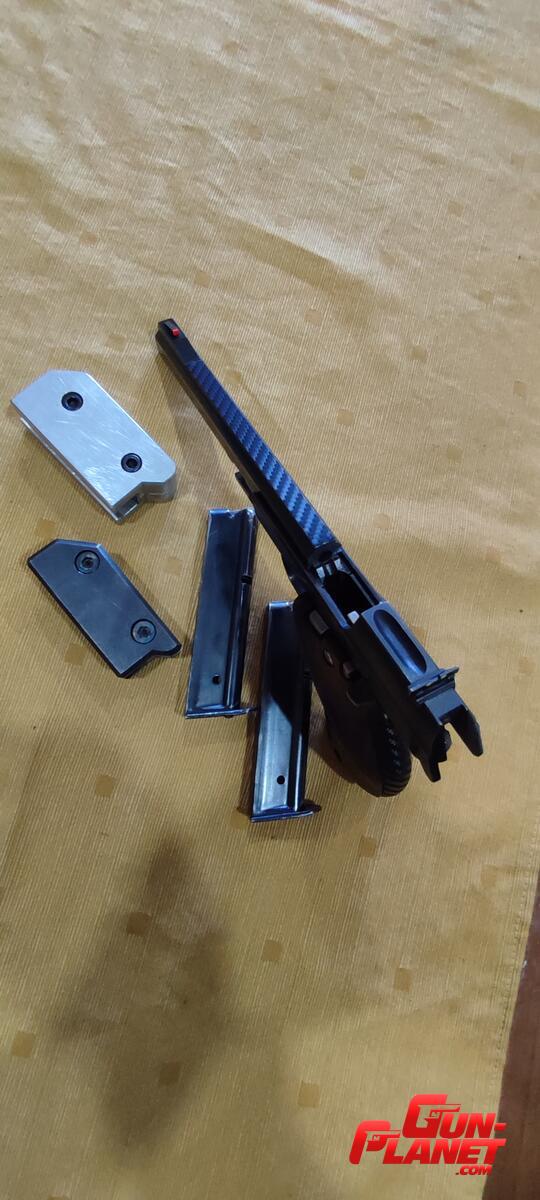 >> Es el de 6" xq es la pistola que trae para poner los contrapesos la de 5 no los trae..tiene uno original y otro maquinado cnc de aluminio los cuales aunque use xq en la categoría que tiro no están permitidos