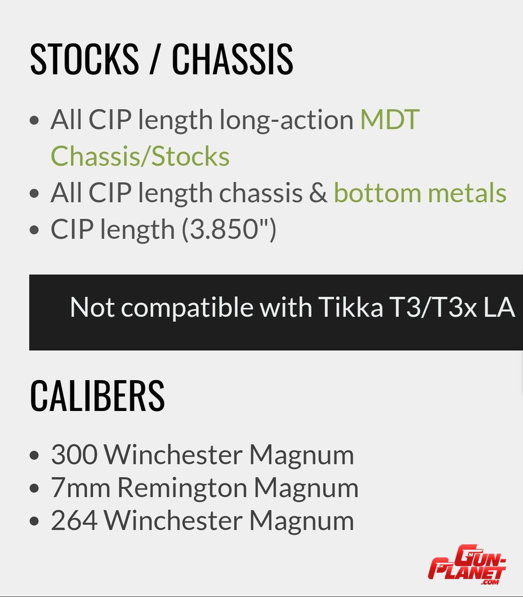 • All CIP length long-action MDT Chassis/Stocks • All CIP length chassis & bottom metals • CIP length *(3.850")*