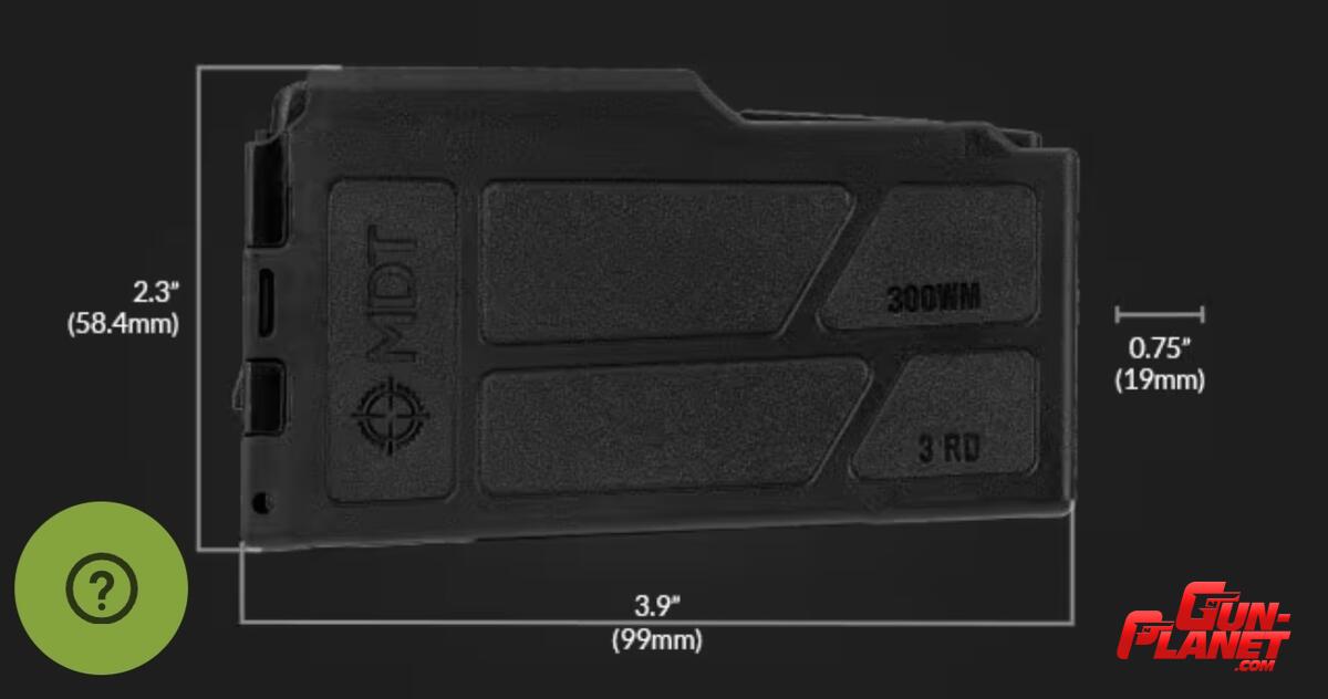 Cargador de 3 municiones cal 300 WM (compatible con 7 mm RM). MDT POLYMER MAGAZINE LA 300 WM - 3 RND. 106256-BLK MDTTAC.COM
