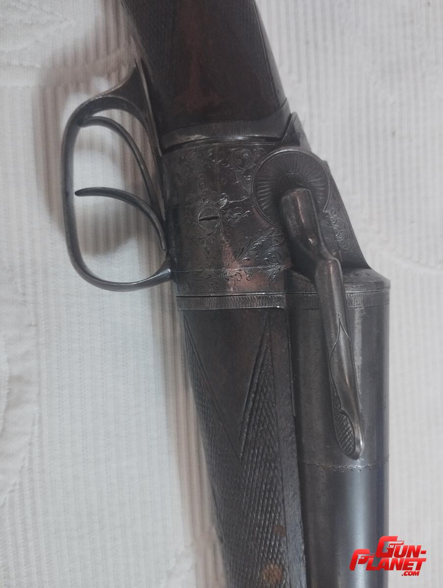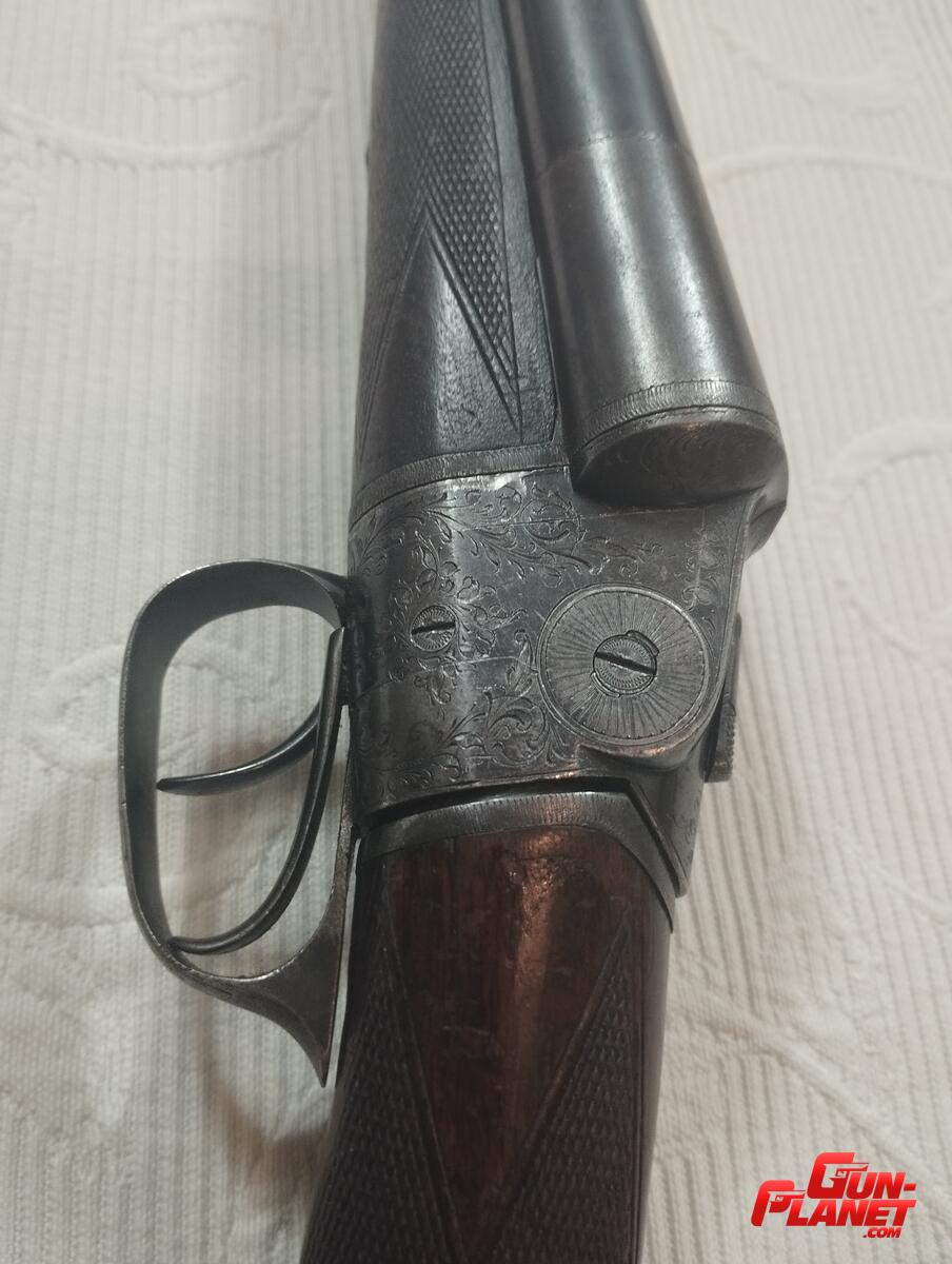 Escopeta yuxtapueta , calibre 12 , darne 1892 , 65 mm de recamara, bloque rotativo , labrada, hay muy pocas en el mundo de este modelo y calibre, muy buen estado.