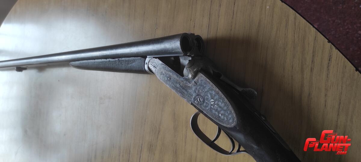 Escopeta yuxtapueta , calibre 12 , darne 1892 , 65 mm de recamara, bloque rotativo , labrada, hay muy pocas en el mundo de este modelo y calibre, muy buen estado.