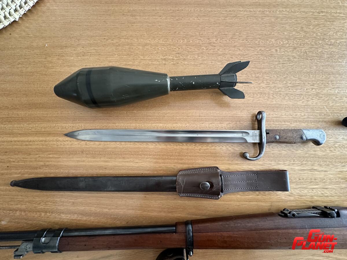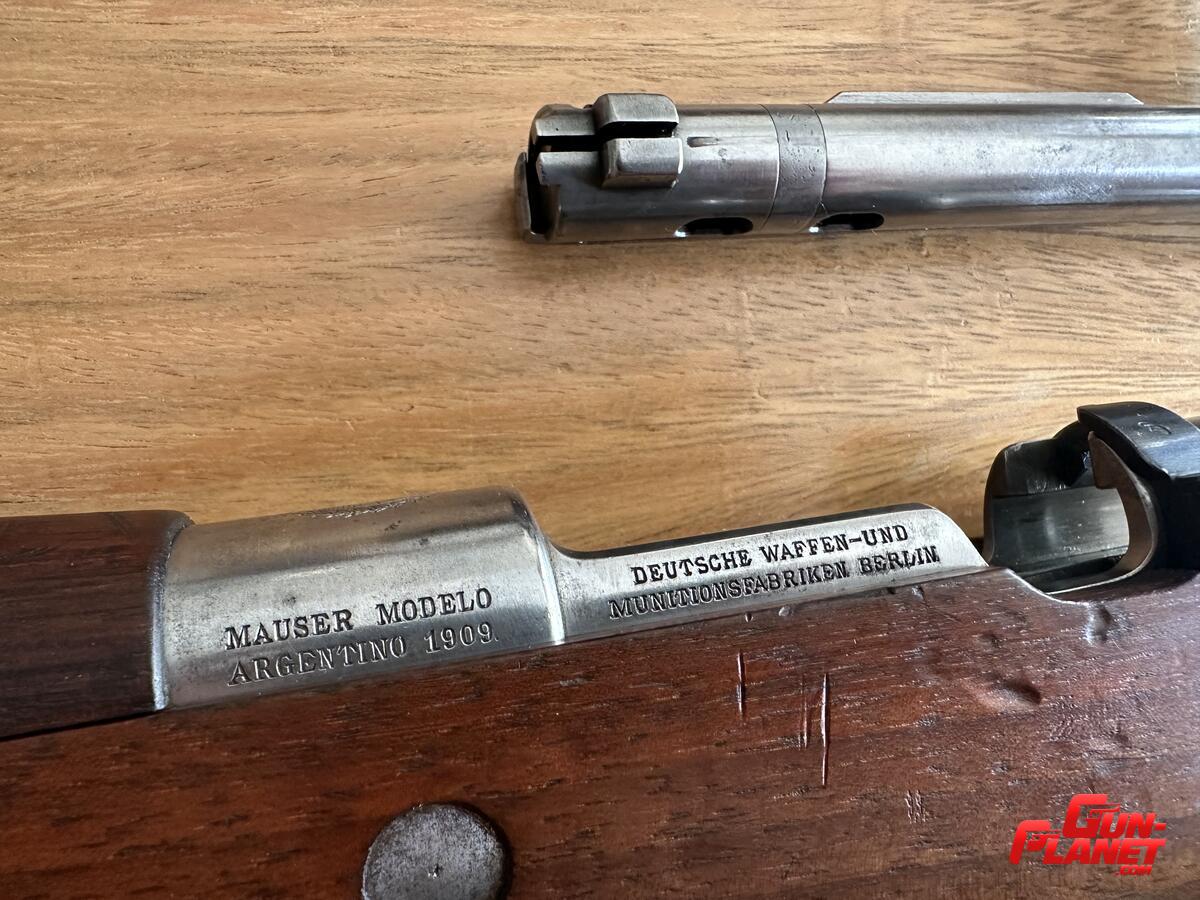 Mauser 1909 en excelentisimo estado (todos sus numeros coincidentes, inclusive el de la baqueta) con bayoneta (coincide su numero con el de su vaina) con su tahali, cartucheras con municion de epoca, lanza grandas y municion (inerte). El mismo cuenta con CUIM.
