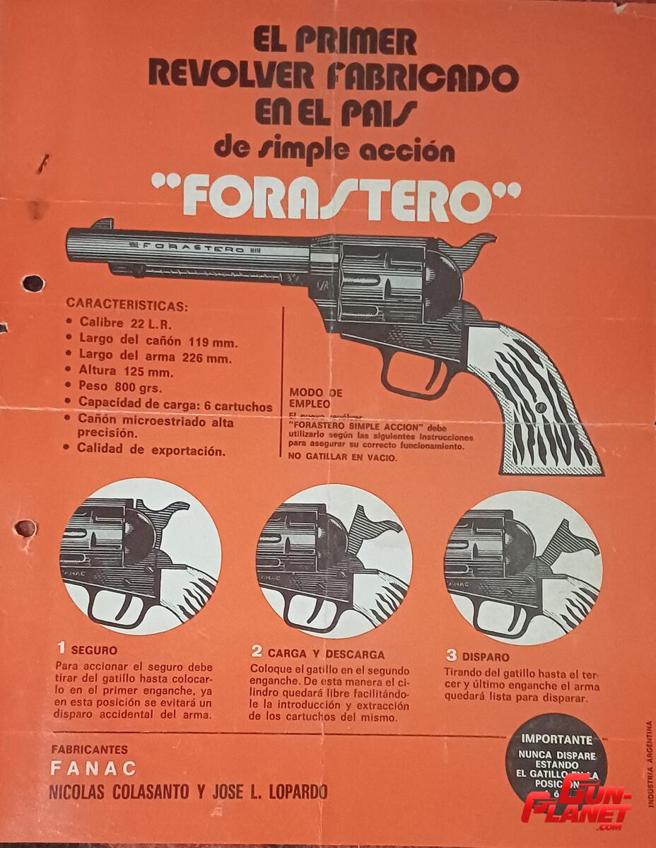 Compro revolver marca FORASTERO calibre 22 largo rifle en buen estado caño y cilindro de acero simple accion con o sin CUIM de los años 80