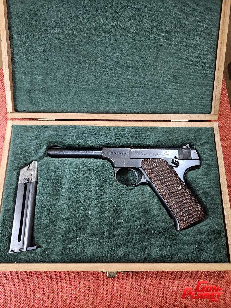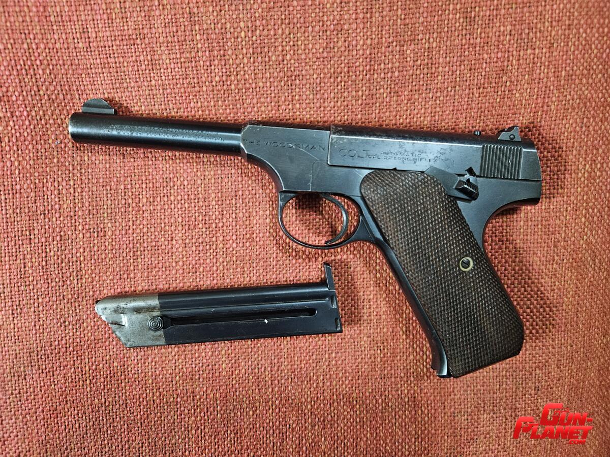 Colt Woodsman calibre .22lr 1° Serie, de 4", con cuim, cargador original.