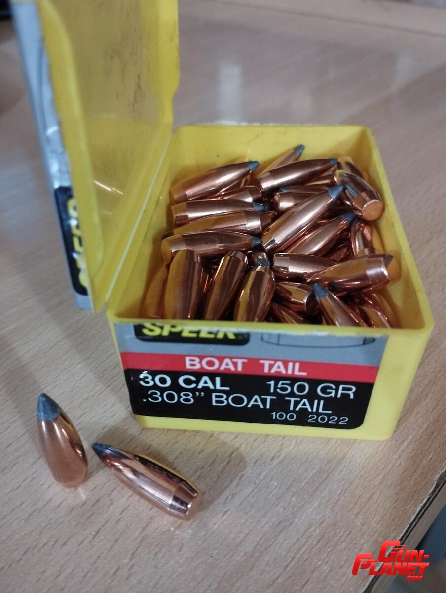 Caja abierta con 85 puntas Speer calibre 30 / 308 de 150 grains ,