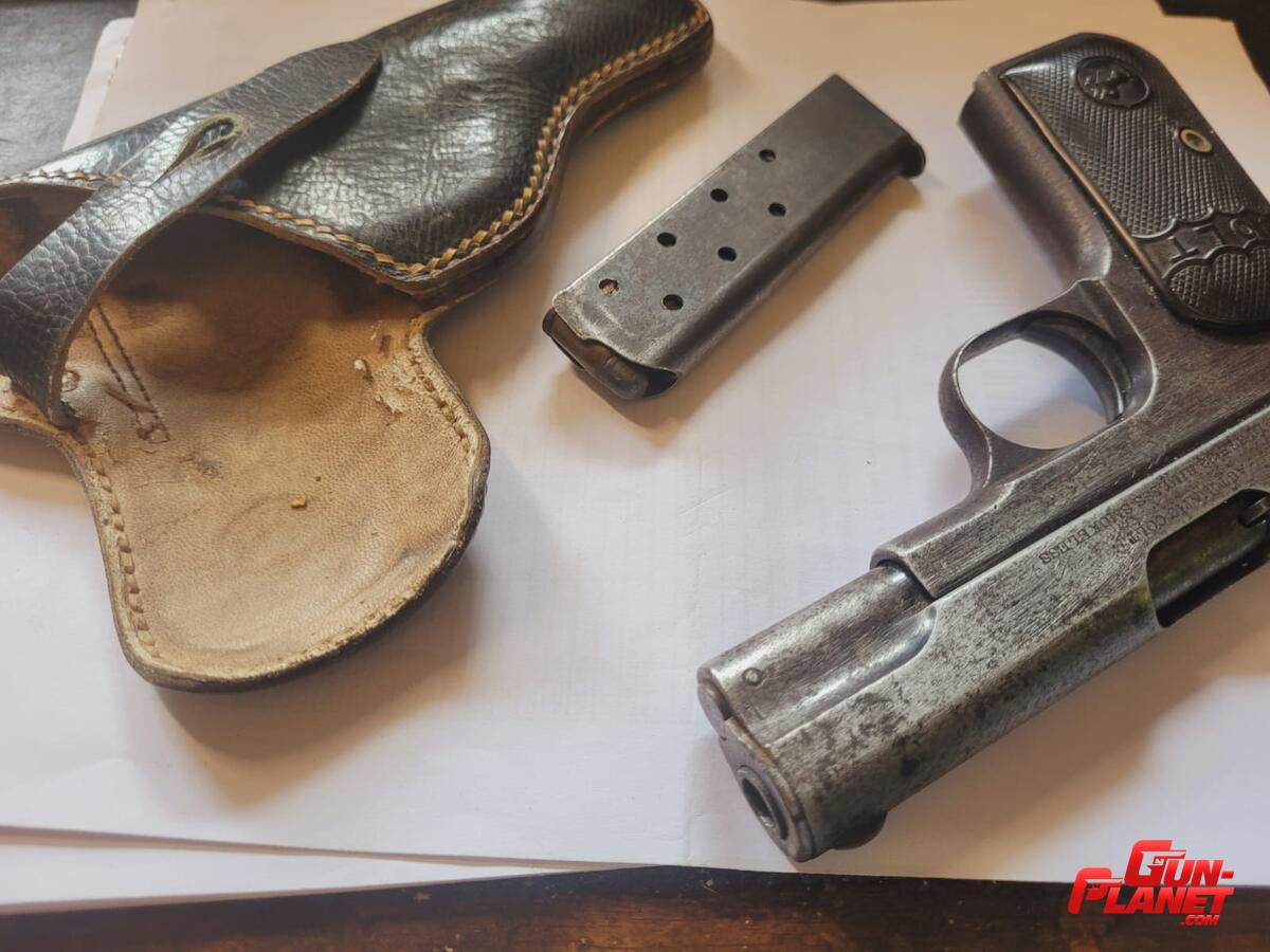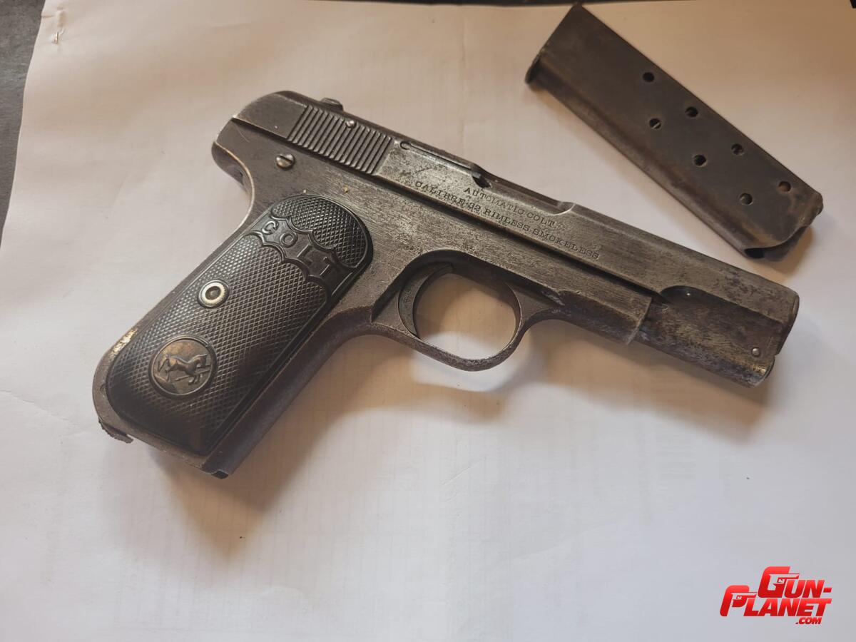 La empuñadura esta quebrado un costado, la pistola, tiene su patina original, la venta solo persona que puedan adquerir un arma.