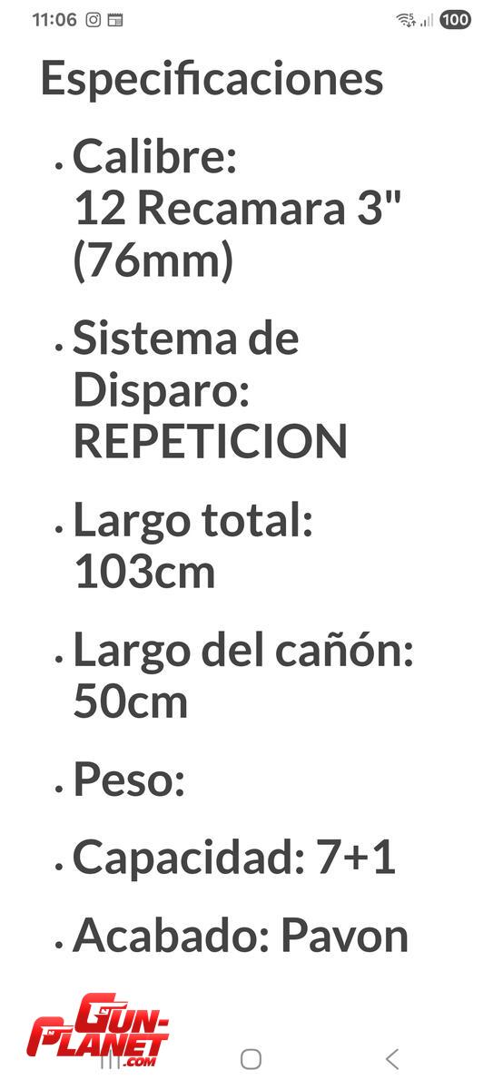 >> Largo total 103 cm largo cañón 50cm 7+ 1 disparo