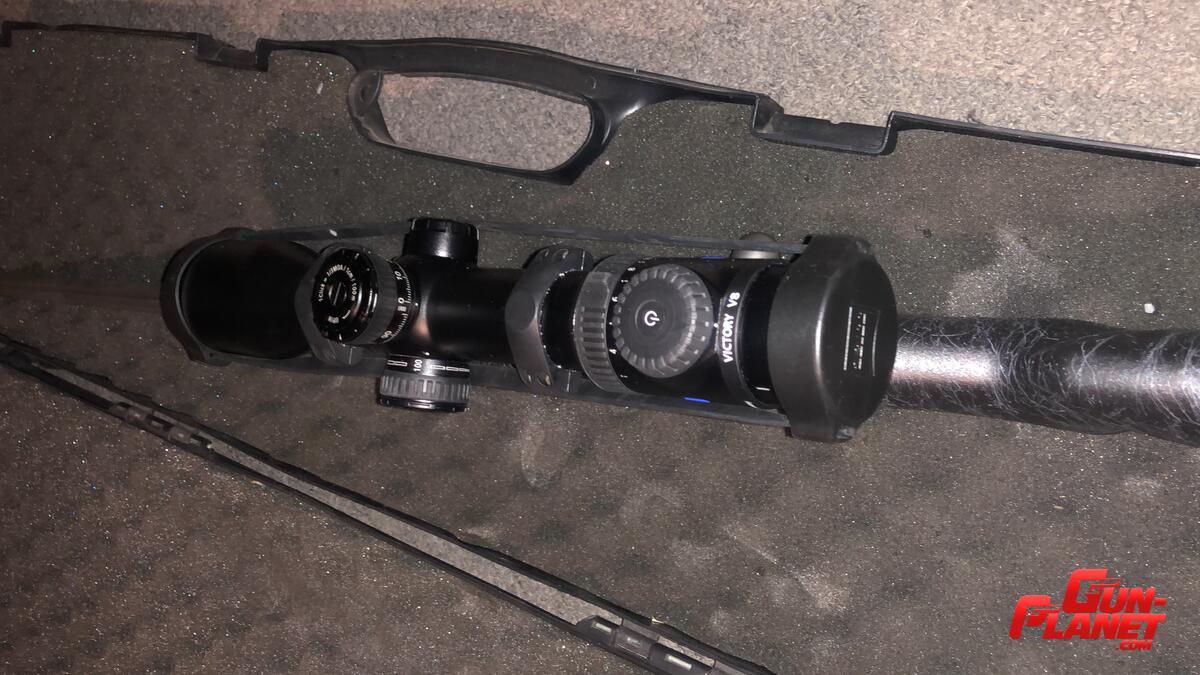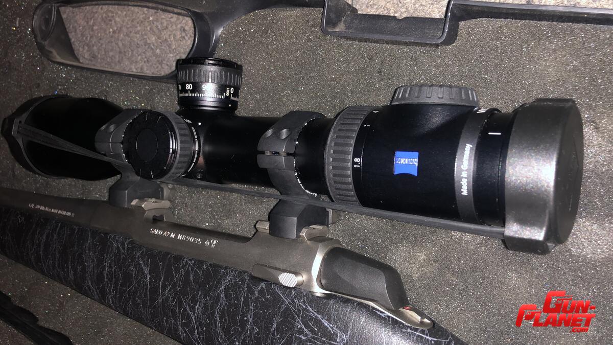 La mira es una Karl Zeiss Victory V8 1.8 x 14 x 50 tubo de 30mm ultima serie alta gama sin uso el saco solo se regulo a 50mts cuatro disparos a 150 mts pega 1cm abajo del centro