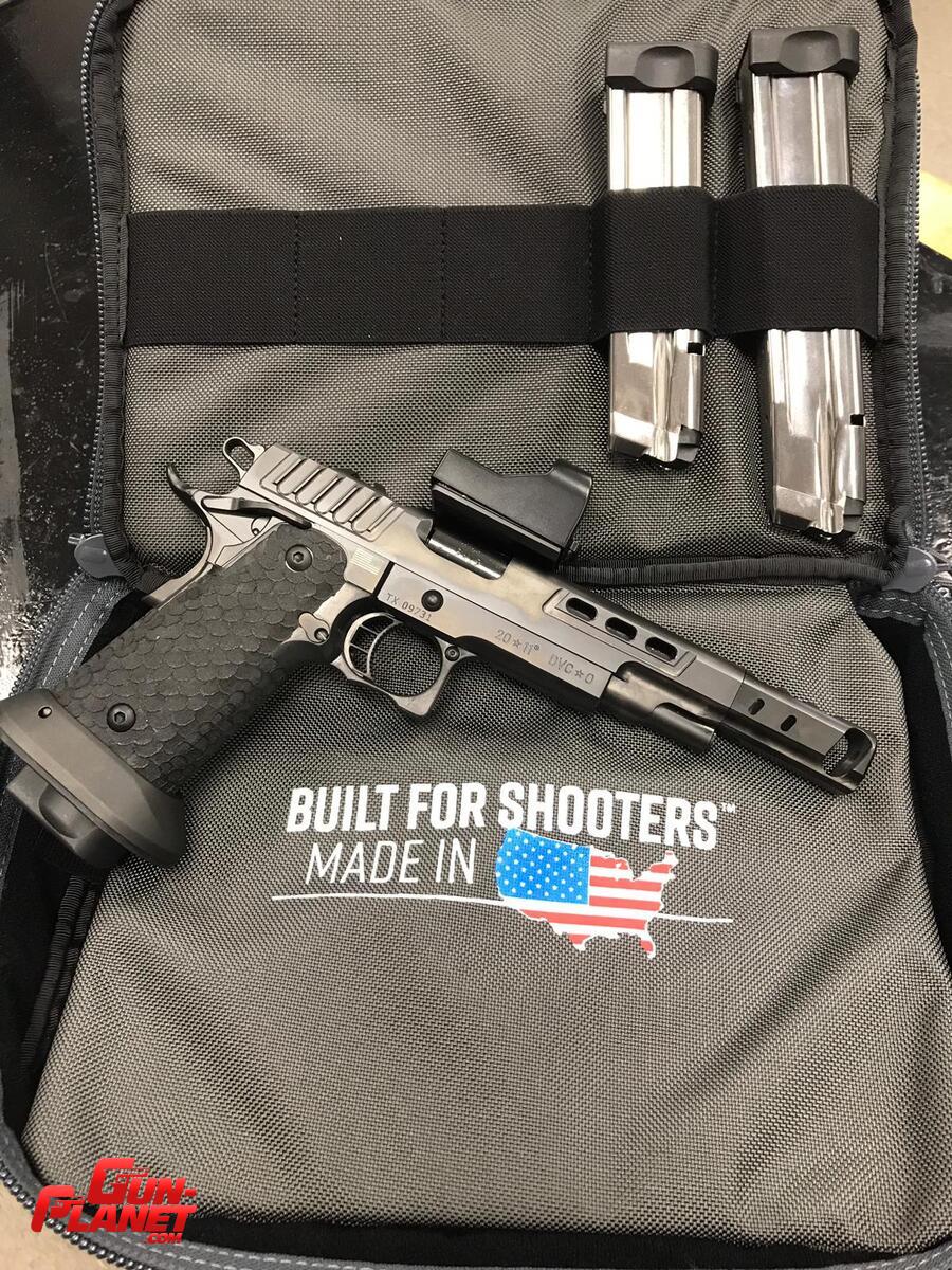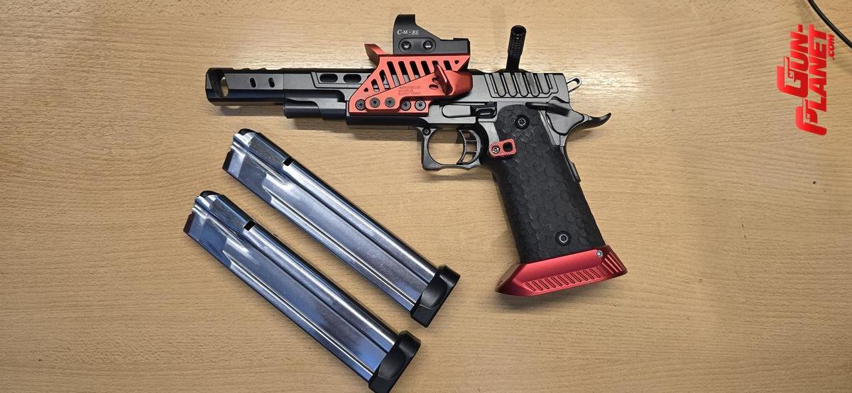 La pistola se entrega con su estuche Bolso original, con 2 Cargadores, uno Largo y uno corto como viene de Fábrica, tambien se entregan los accesorios en color Rojo : Embudo, Base de la Mira, boton de reten de Cargador y los Pad, a su vez , los de color negro original.