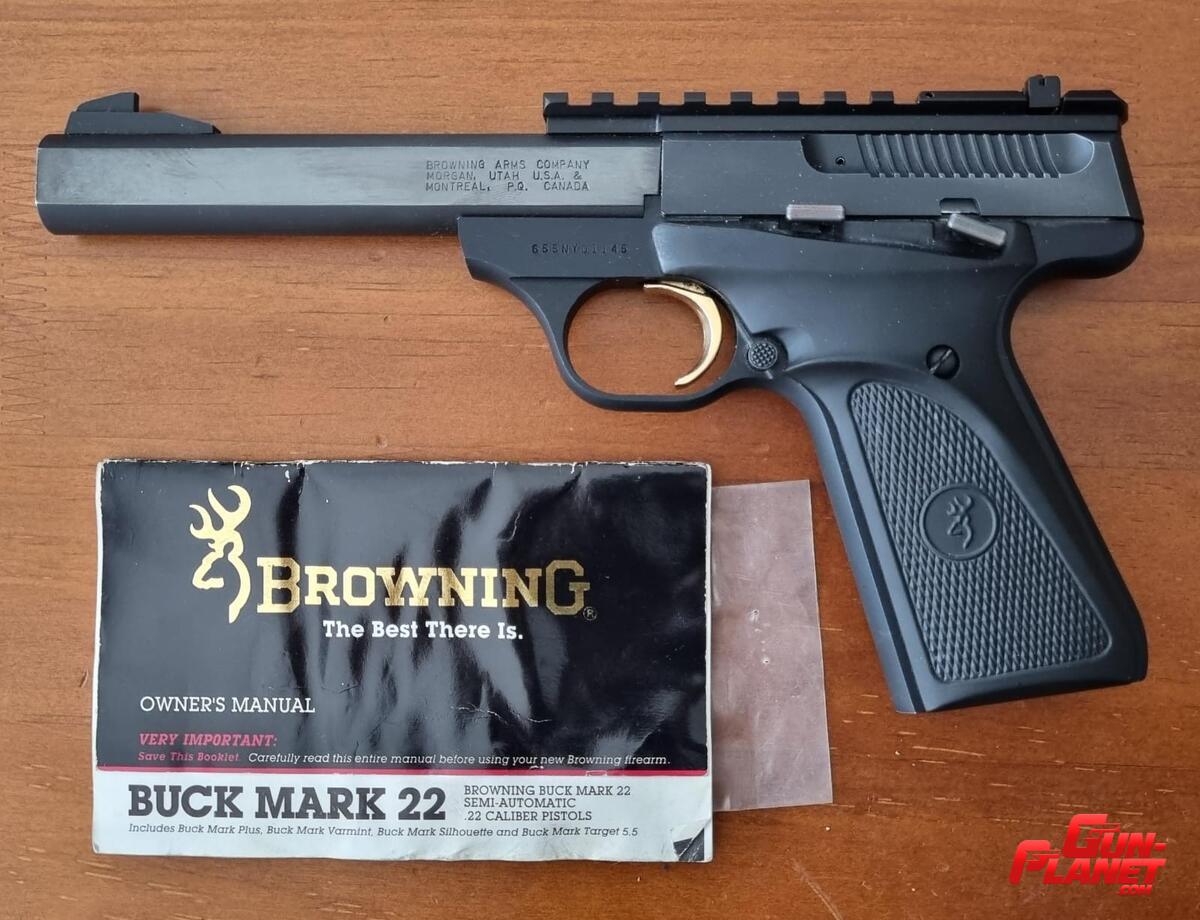 Pistola Browning Buck marck calibre 22LR, 1 cargador con mejora de aparato de puntería TACTICAL SOLUTIONS, se entrega alza original, en perfecto estado, con CUIM al dia