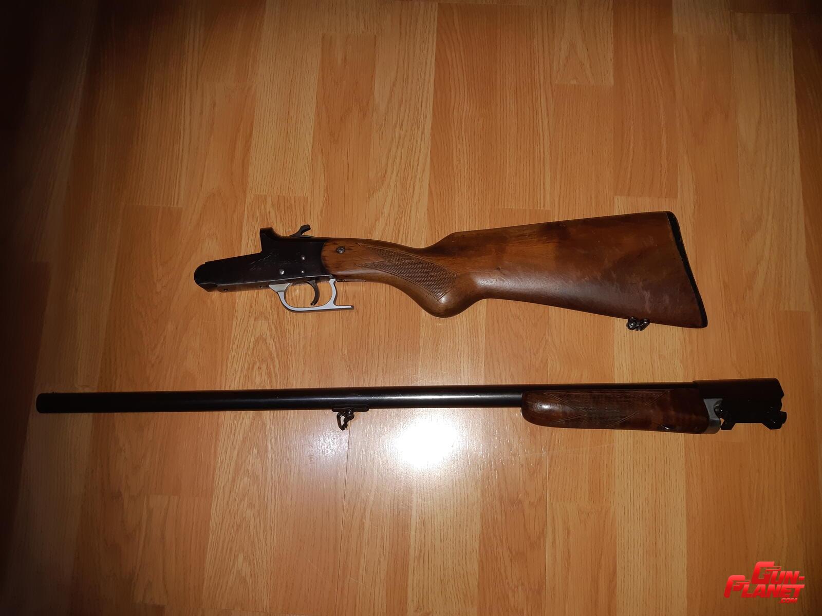 Escopeta de un caño, de un tiro, marca Legend, origen turco, calibre 20, plegable, con correa de cuero, artesanal y funda marca suri.