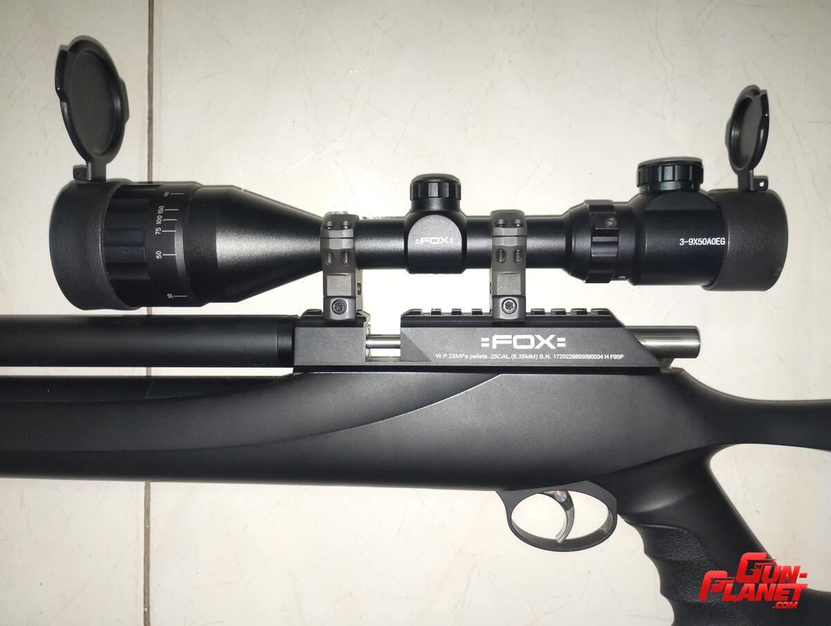 PCP FOX M25 . CAL 6.35 . CON MIRA FOX DE 3 a 9 x 50 con punto luminoso.accesorios, pico de carga, cargador rotativo de 6 , funda...(opcional compresor u$ 700 va aparte)