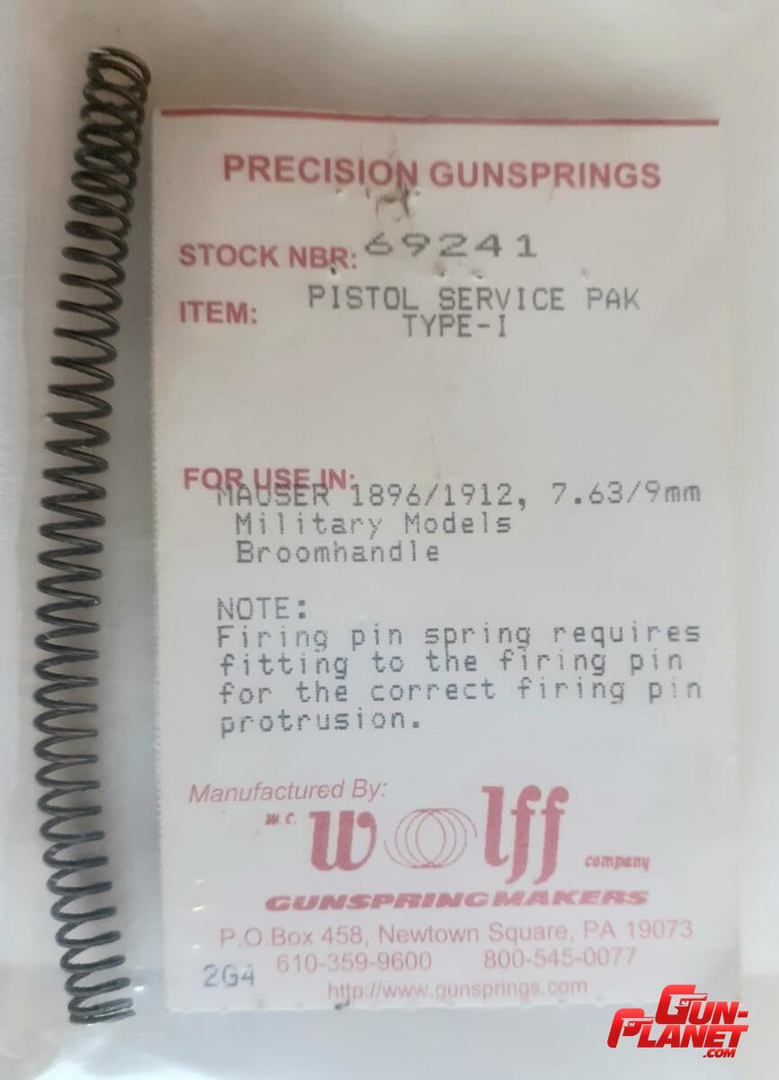 RESORTE ORIGINAL CORREDERA MAUSER C96 - USADO - Apto para 7,63 o 9 mm. Folleto adjunto, ilustrativo - Entrego únicamente TFA CABA - No hago envíos.