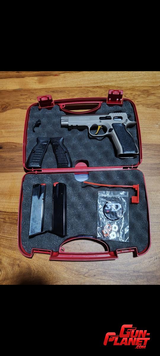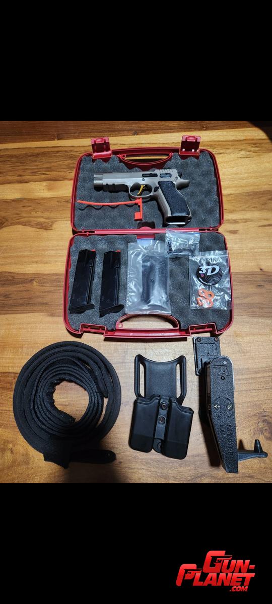 COMBO: Pistola tanfoglio combat t, tiene sus cachas originales al igual que su cola de disparador, se le puso cola de disparador marca Von Custom y cachas de Kydex a medida, 2 cargadores de 17 cartuchos originales, un cinto de poliamida con su velcro marca HOUSTON, un porta cargador doble plástico y una pistolera IPSC marca KR modelo Spectre 1FA regulable con seguro, muy poco uso del combo en general, la pistola tiene muy poco uso (x razones personales se dejó de usar, tiene cercanos los 800 disparos) escucho ofertas razonables