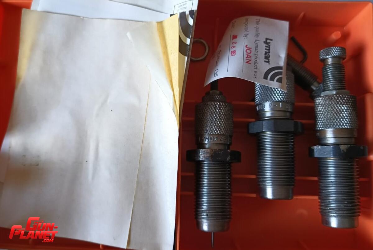 DIES LYMAN 45 LONG COLT CON SHELL HOLDER. USADO COMO NUEVO.