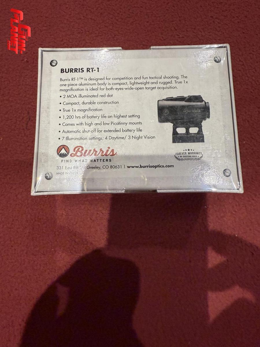 Mira de punto rojo Burris RT 1 de 2 moas nueva en caja sellada.