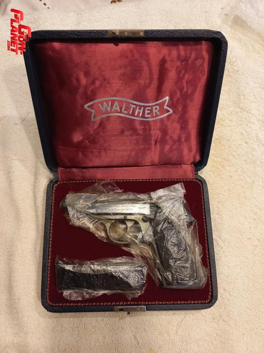Walther PP cal. 7.65 sin usar , con 3 cargadores , cartuchera y caja original fabricada en Zella Mehlis Turingia Alemania.