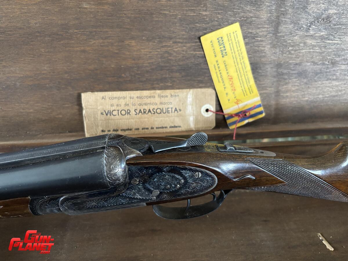 Fina Escopeta yuxtapuesta Víctor Sarrasqueta modelo 203, calibre 16 , platina larga grabada , con certificados originales de garantía de pruebas y certificados de fabricación del año 1968 . Sin uso , impecable estado , escopeta inmaculada . Tiene Cuim y se entrega al iniciar el trámite .