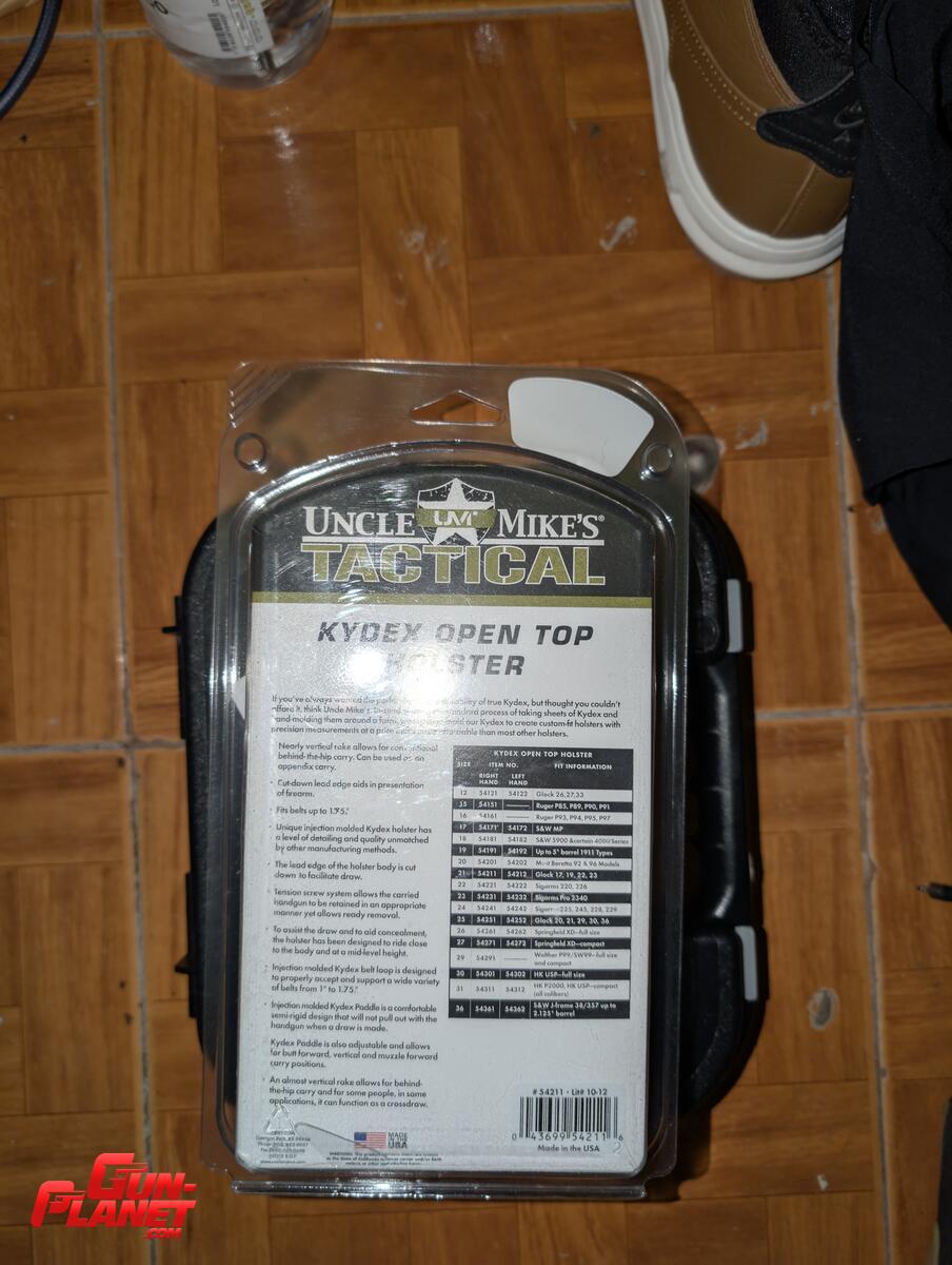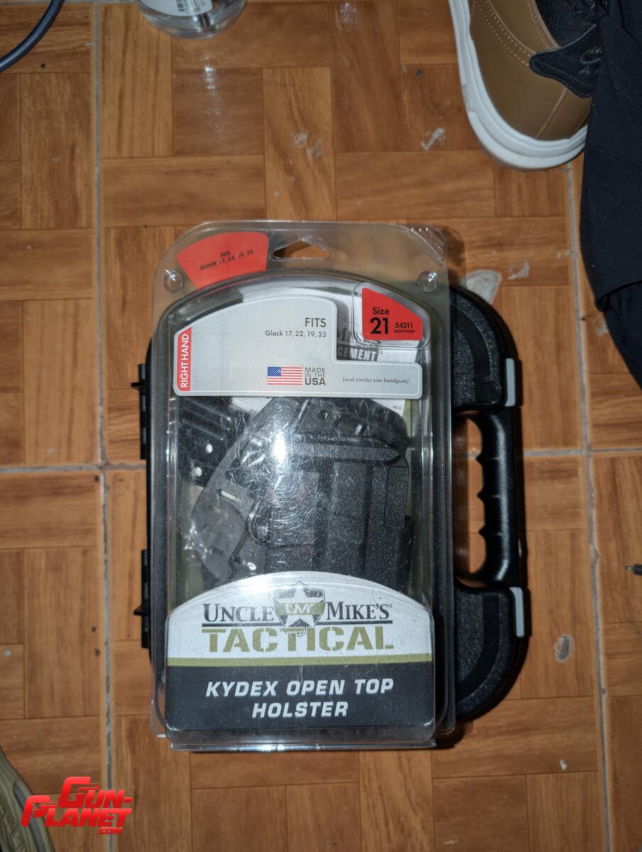 funda paleta para glock 17 y varias mas, marca uncle mikes, la compre para un curso y no la use al final. tiene para poner fija en el cinturon o no, un manual y una bolsita con algunas cosas.