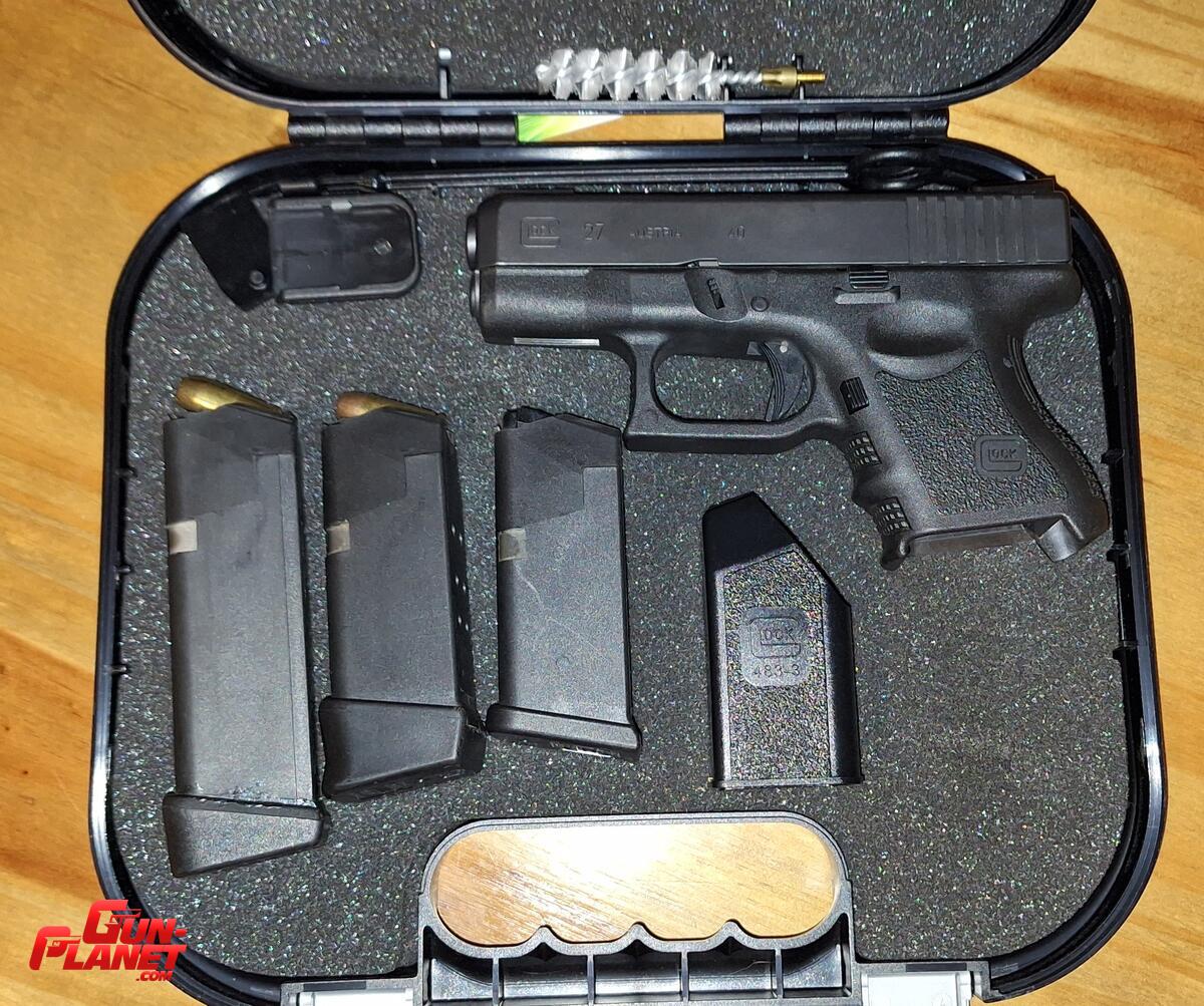 glock 27 gen 3 con accesorios 3 cargadores miras truglo de fibra y tritium funda interna con porta cargador de kydex 2 +2 originales glock linterna streamlight tlr6 con laser y funda interna de kydex marca tuster traída de eeuu la pistola tiene muy pocos disparos realizados esta igual a nueva
