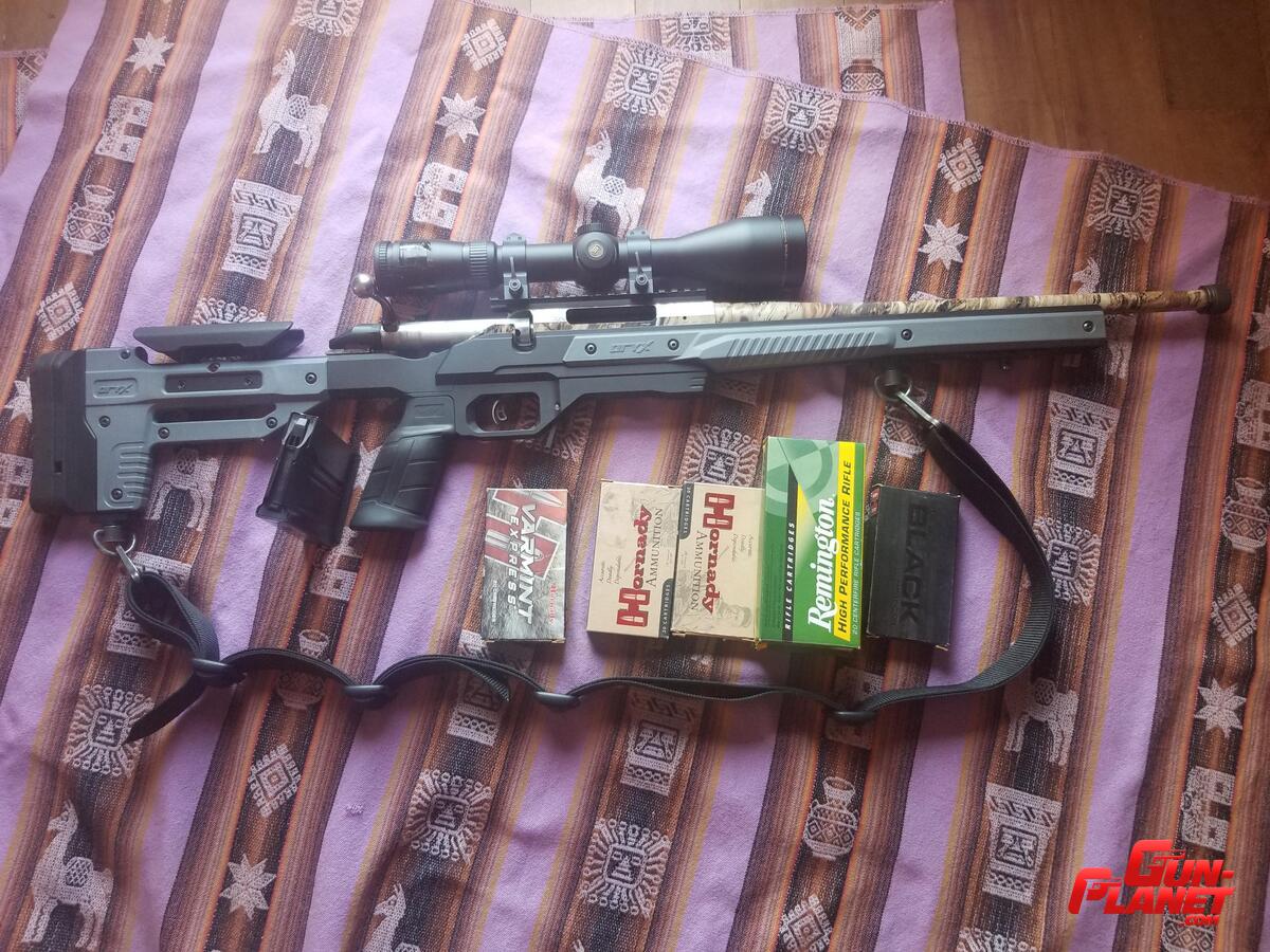 >> Cal. 30o win mag. De repetición. Culata sintética verde texturada. Cañón Varmint acanalado inoxidable. Largo del cañón 26". Cañón roscado. Cargador destachable. Disparador regulable. Incluye bases weaver.
