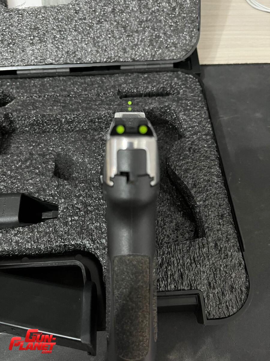 Completa en caja con manuales, 2 cargadores de 17, 1 cargador de 15, cepillo, ayudante de recarga y funda de portacion interna.