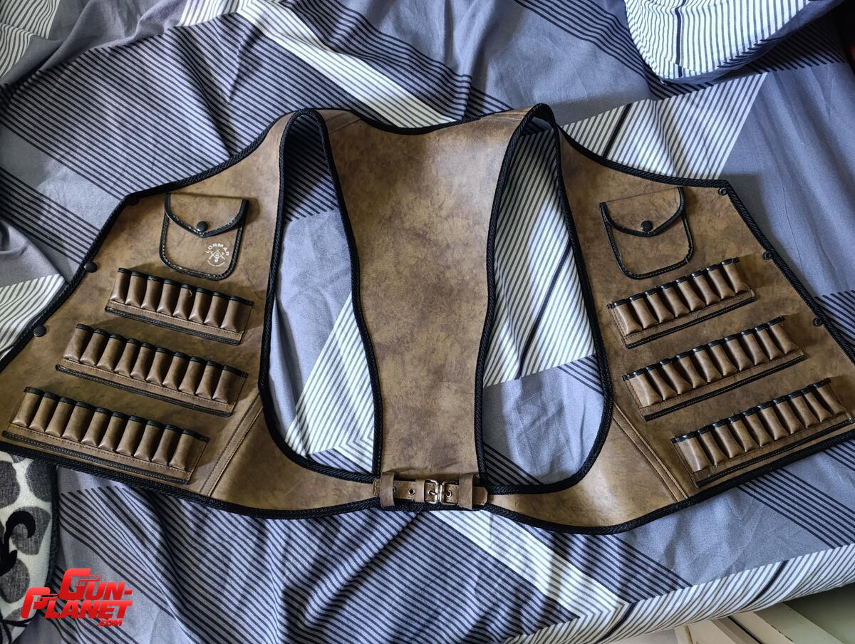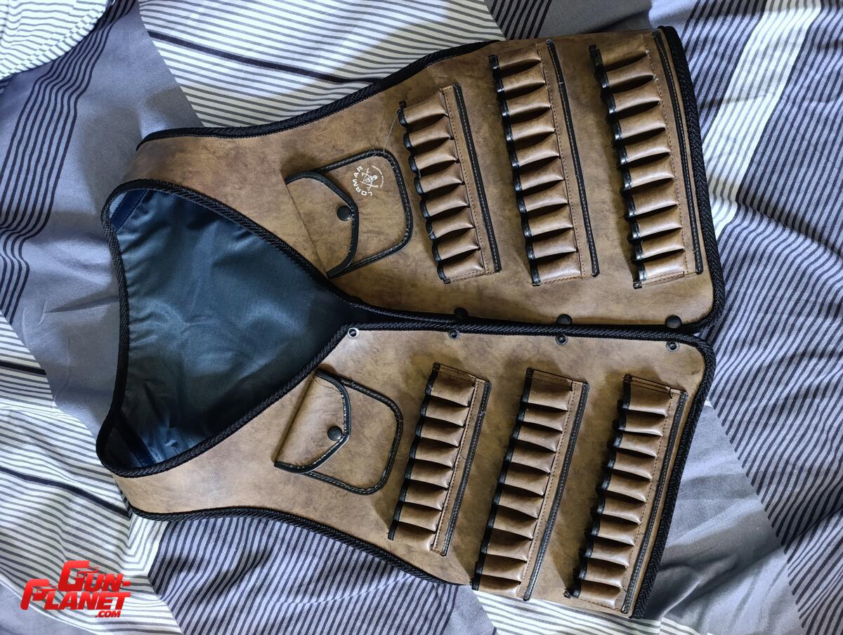 Chaleco de caza marca Lormar, de cuero genuino para cartuchos de escopeta calibre 16.