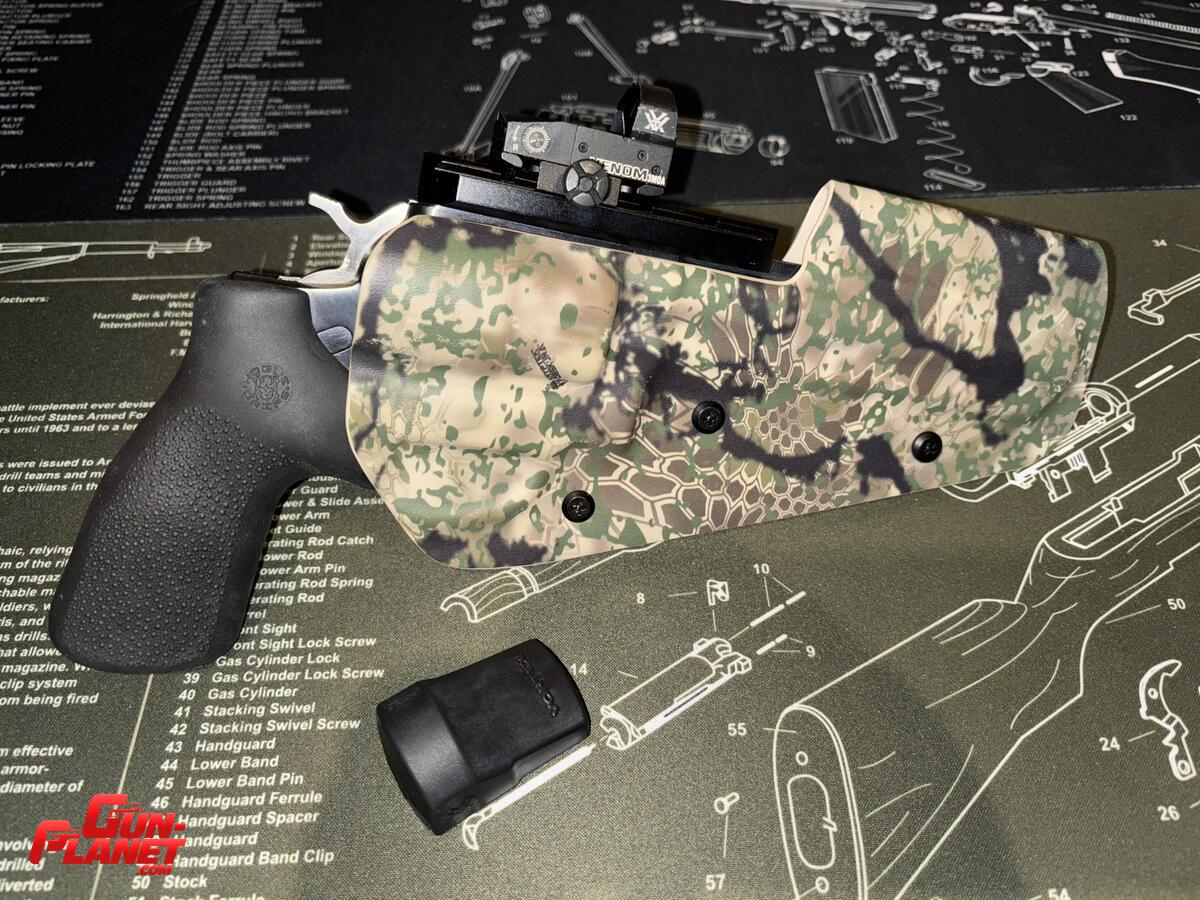 Revolver Ruger GP100 6” Pavon 357mg. Customizado por R. Tagle. Caño compensado y base para mira de punto. Alivianado con kit de resortes Wolff. Mira Vortex Venom. Guion Hi-viz, cachas Hogue y originales Ruger. Funda de Kydex de ToroHolster. Se entrega con todos los accesorios mas sus componentes originales. Impecable estado. u$d1900.- Tiene Cuim. Se entrega contra tramite urgente en Renar del TFABA o en la armeria del club.