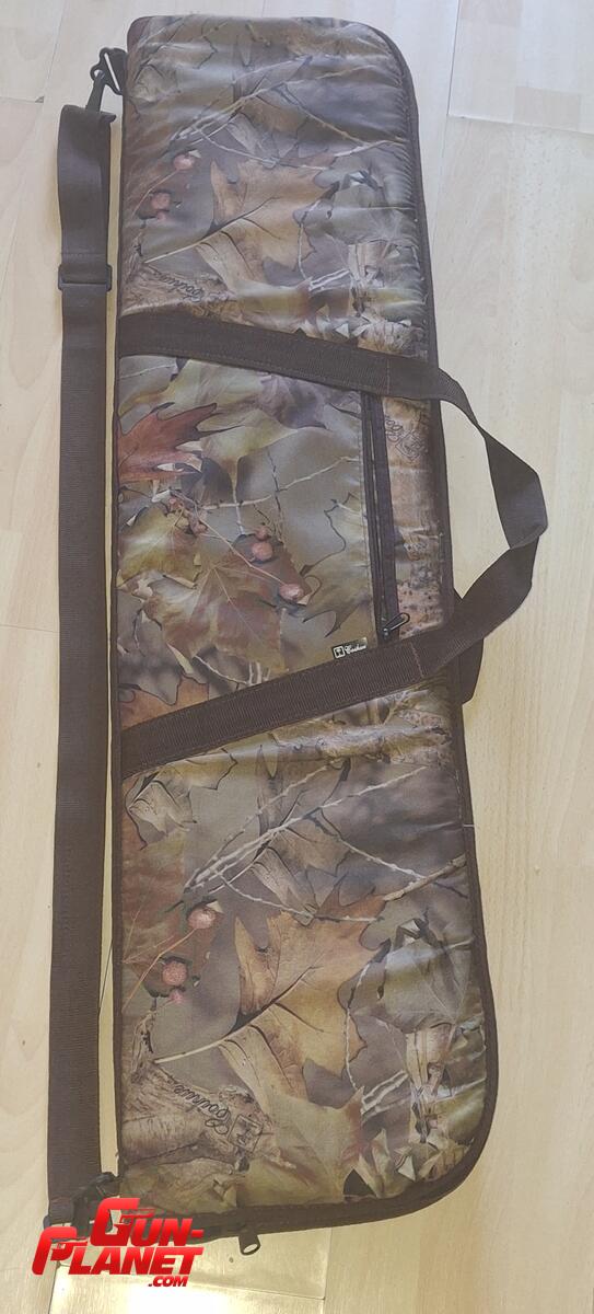 Funda Coihue camuflada largo 1050 mm ancho 280mm con 1 bolsillo manija y correa para colgar del hombro . Prácticamente sin uso