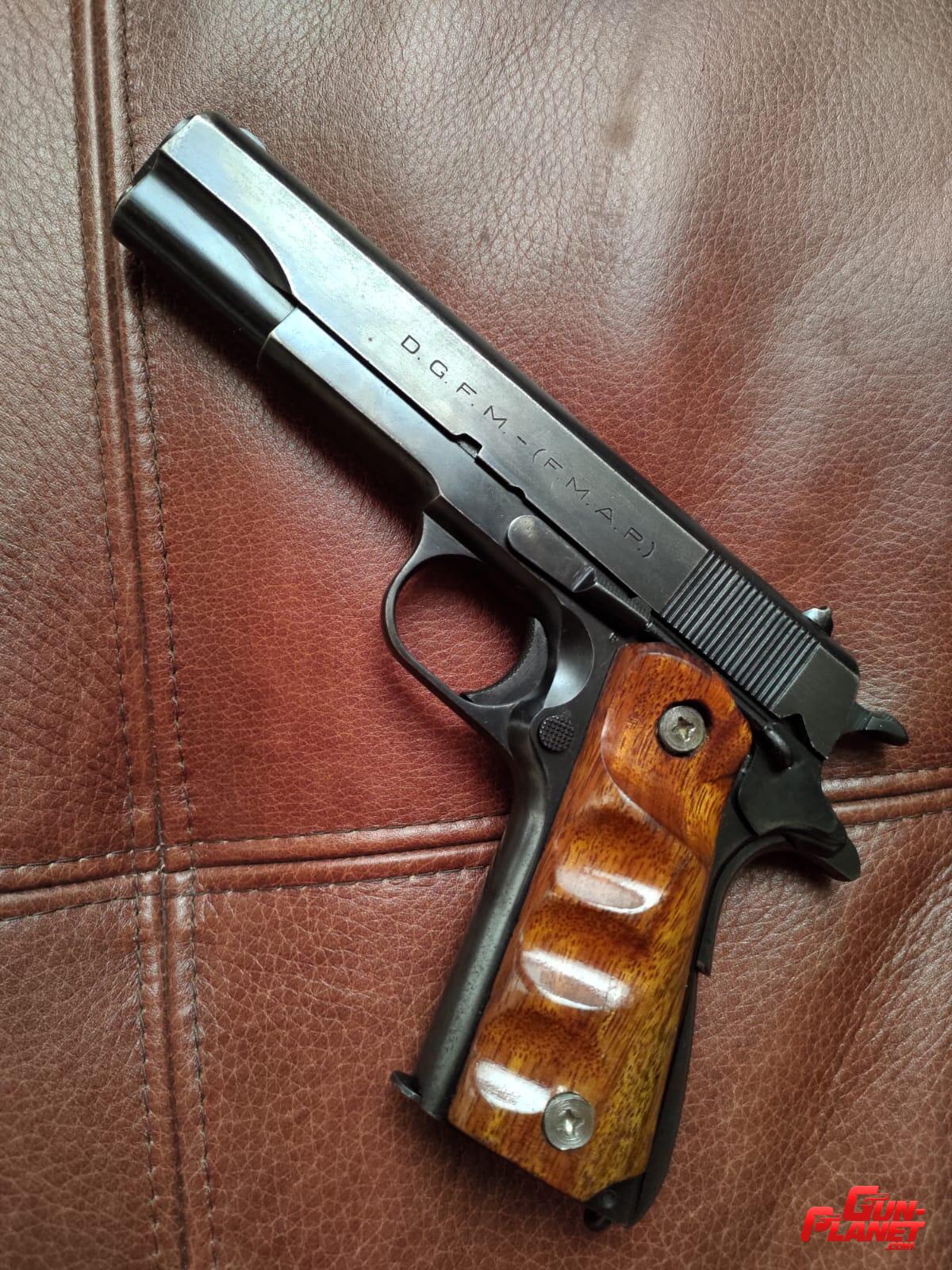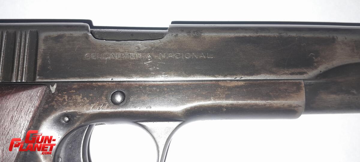La pistola esta reempavonada y desgastado dicho pavón dando un aspecto estético no muy lindo. Estado de funcionamiento perfecto, número muy baja de 3 dígitos, pertenecio a gendarmeria nacional. Muy presisa con cachas de maderas anatómicas. Sorprende la agrupación a 25 metros todos los disparos en 1 pulgada.
