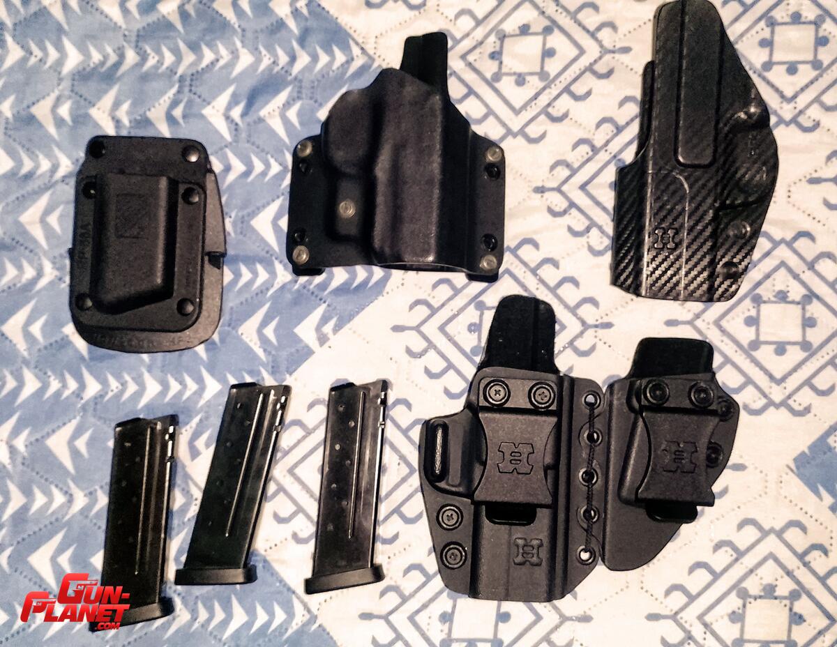 Incluye alza y guión de acero, 3 cargadores originales, funda appendix marca Houston, funda interna de carbono marca Houston, funda externa marca Dastaktik y portacargador Houston y llave de seguridad.