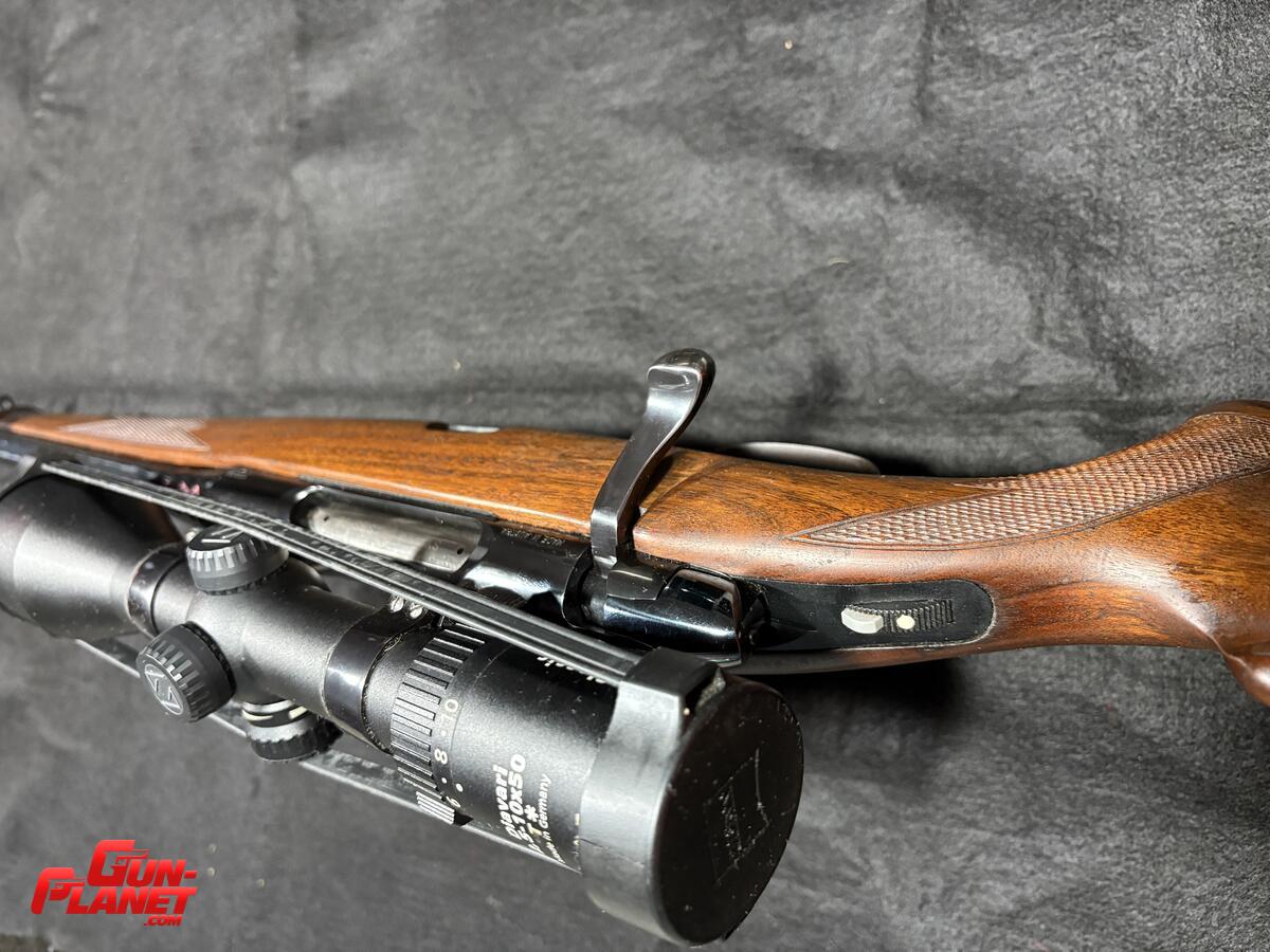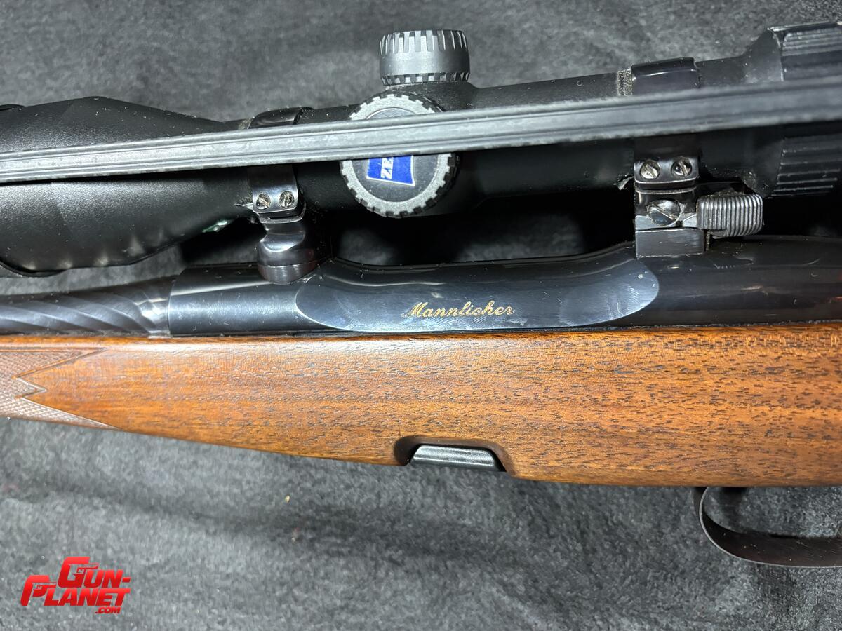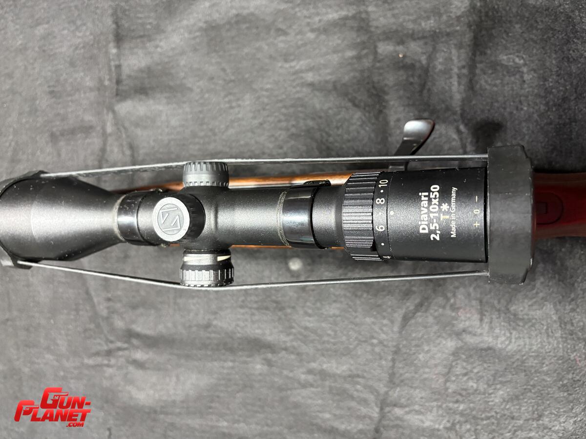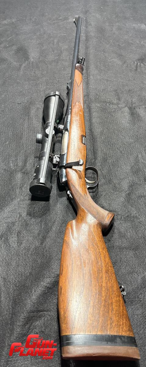 Fusil Steyr Manlincher SBS 96 cal. 8x68S. Con mira Carl Zeus Diavari retículo iluminado. Anillas quitypon de acero originales. Este rifle se armó y se calibró solamente. No tiene salidas al campo. Está inmaculado.