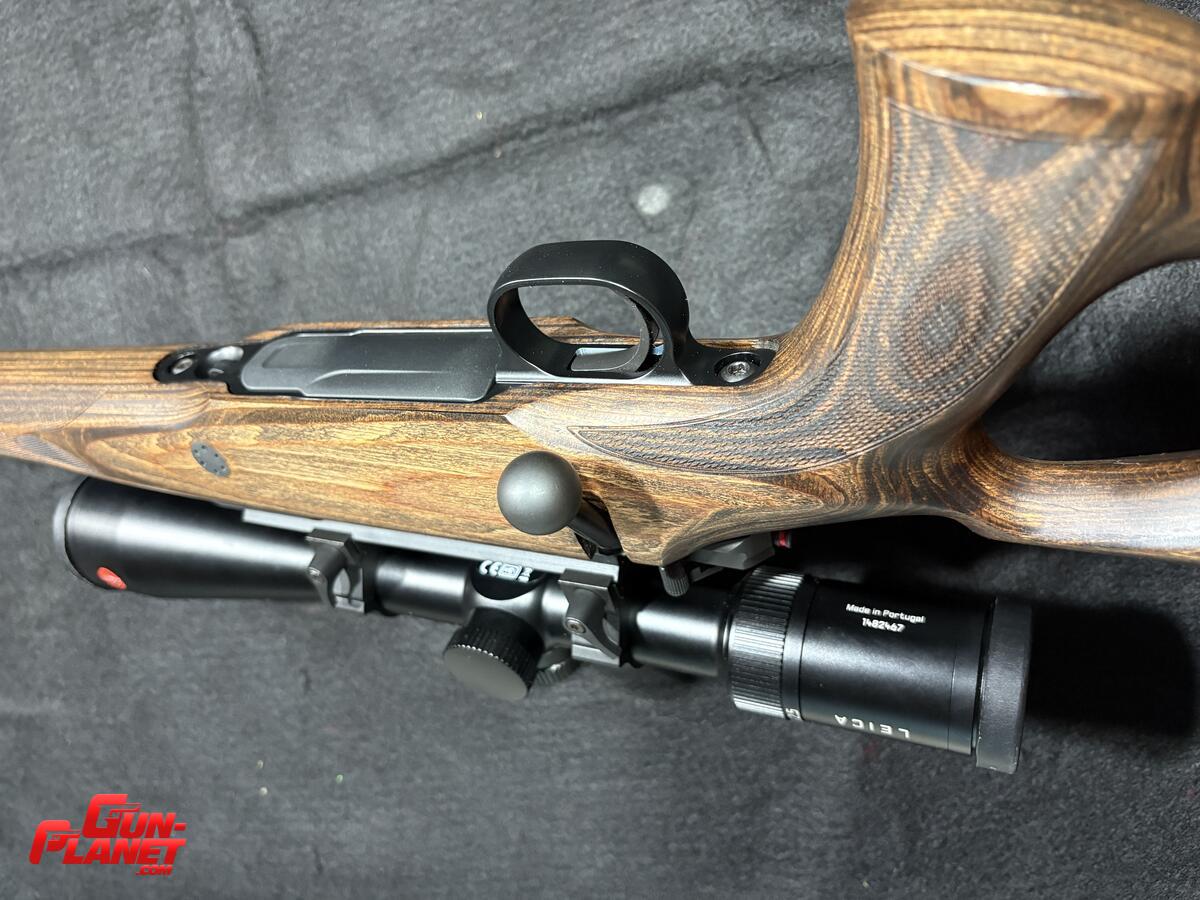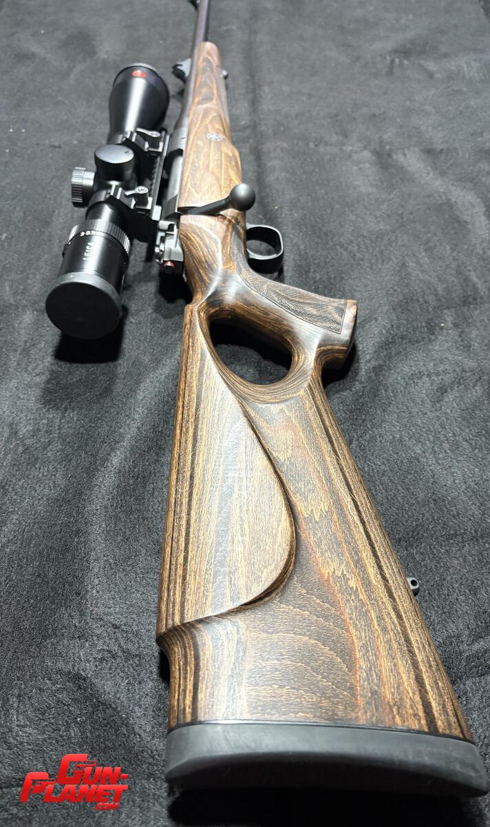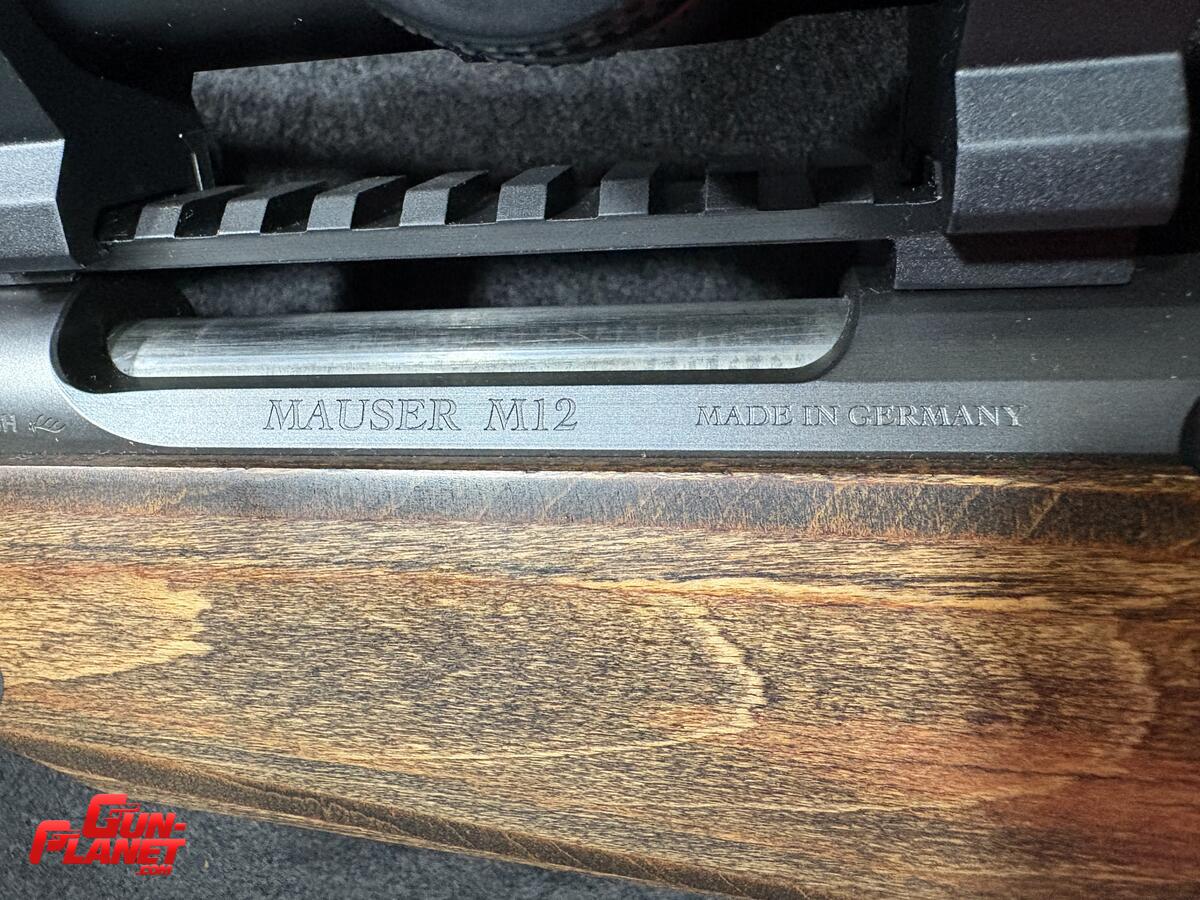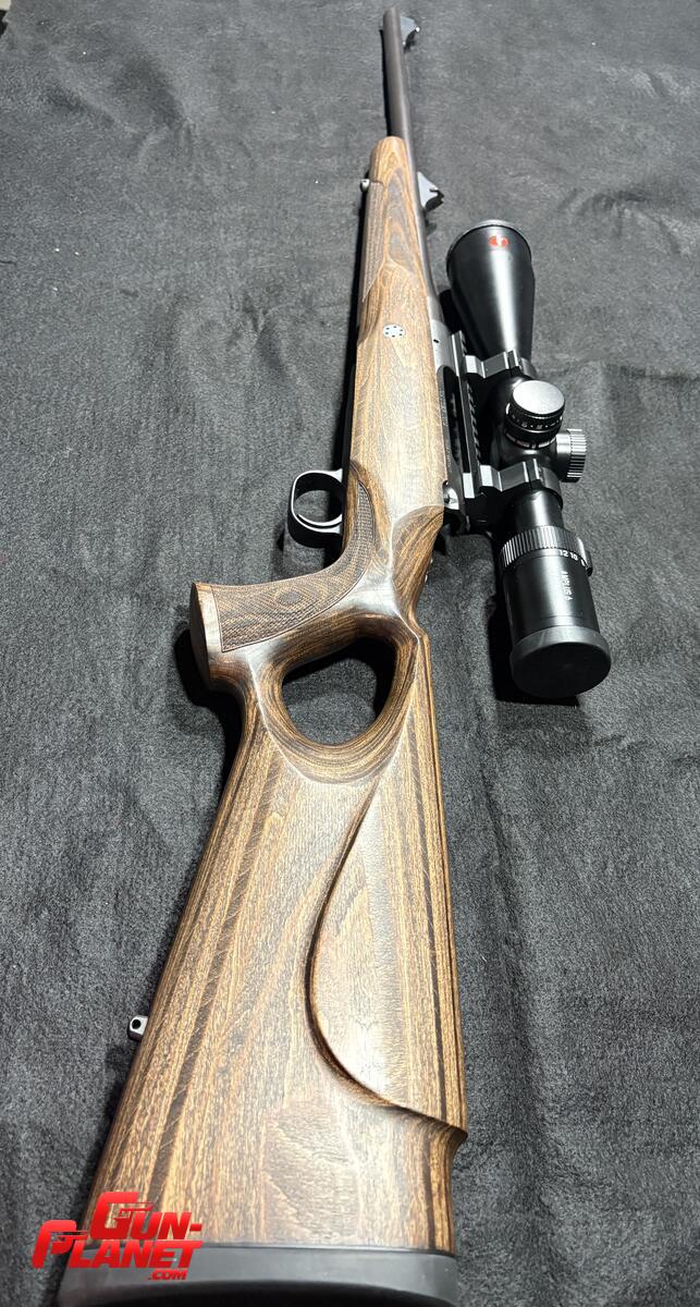 Fusil Mauser M12 GTI. Culata thumbole laminada con mira Leica Amplus 6 retículo iluminado anillas quitypon de acero originales. Gatillo Mach Seco. Seguro de tres posiciones. Cargador de 5 tiros detachable. Todo el conjunto es nuevo. Se armó pero todavía no se disparó. No está calibrado aún. Muy pocos de estos rifles entraron a Argentina. Equipo 100x100 Alemán.