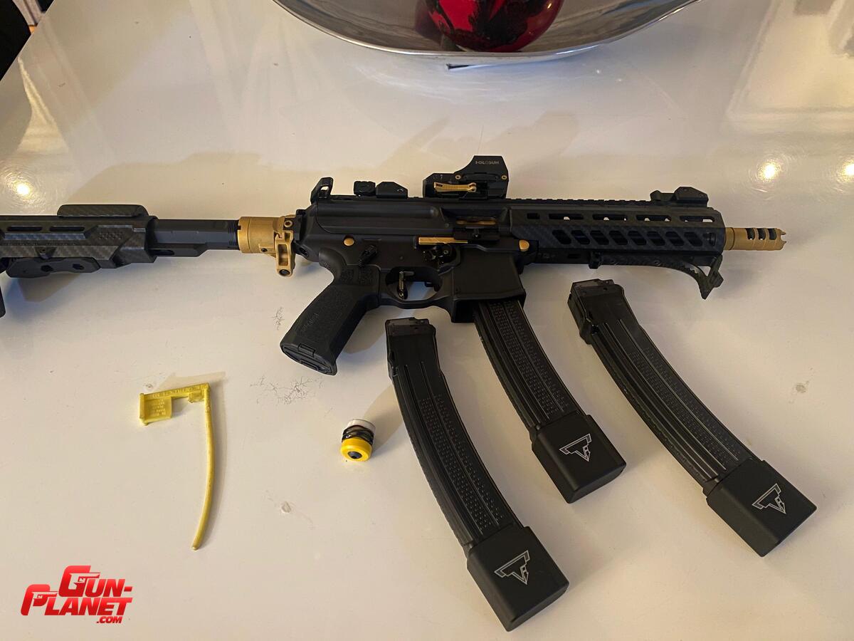 Carabina semi auto sig 9mm , lista para competir , los mejores accesorios que se puedan comprar , niutruro en partes especificas , culatin rebatible , armado y puesta a punto por la Brama Custon Guns , tres cargadores con bases Taran , se entrega con los accesorios originales , saludos