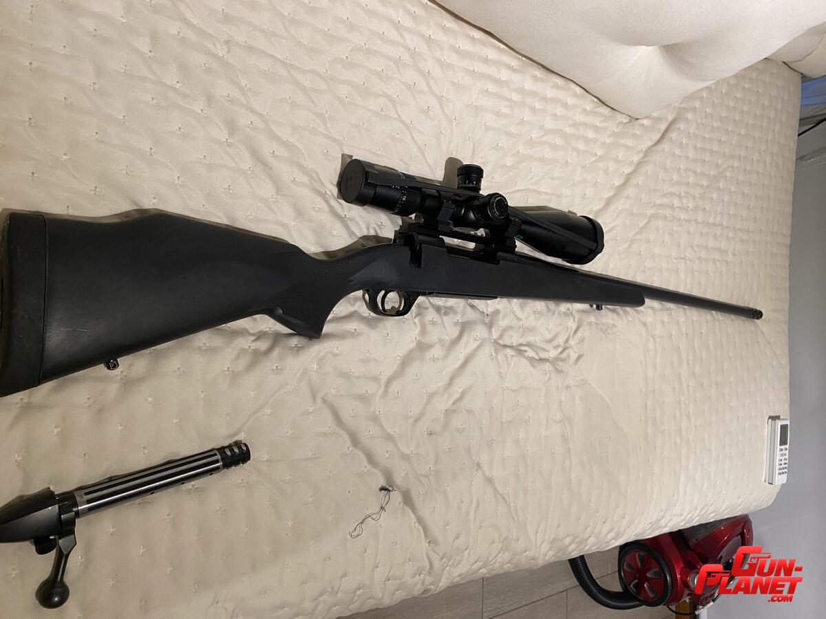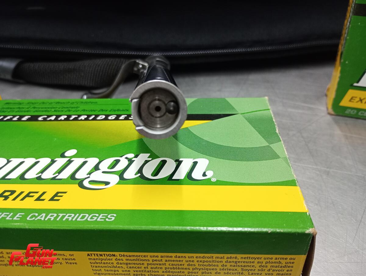 Tiene colocado un freno de boca. El mismo está ajustado al cañón, no roscado.