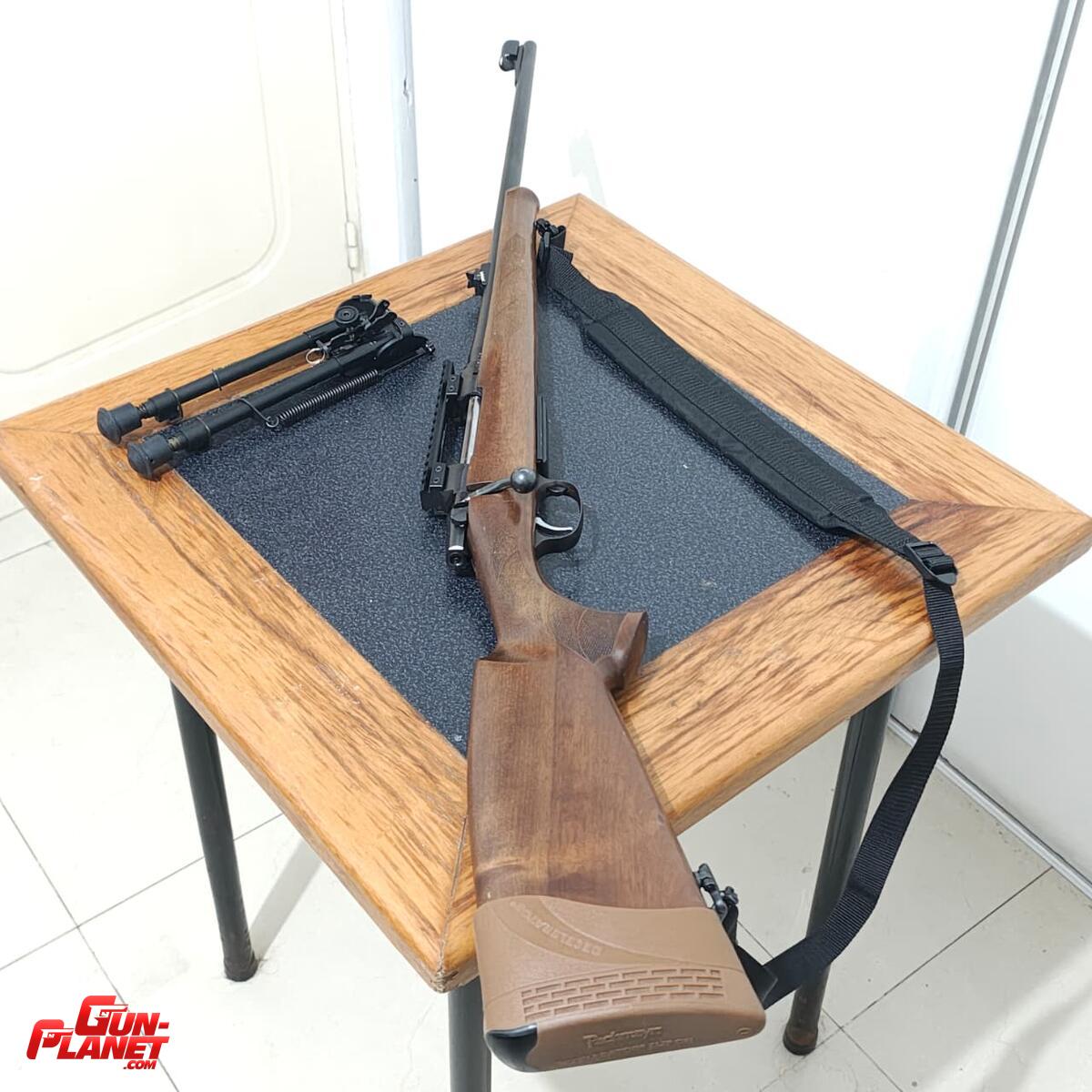 Hola . Te comento . Está nuevo. Se usa para cazar . Y lamentablemente tira poco. . No tengo la culata original y también tiene bipode como el tuyo. De interesarte una permuta podría ser arma por arma. Saludos