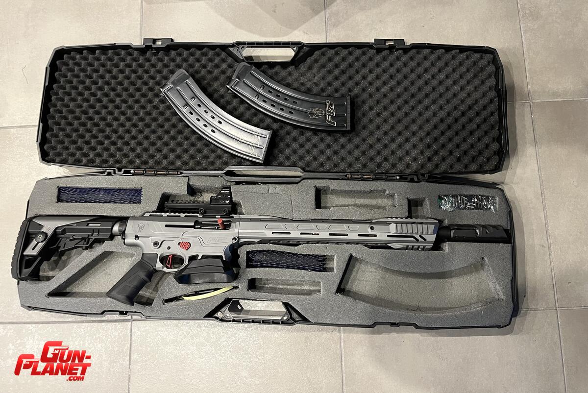 Escopeta Typhoon Defense F12 - calibre 12/70 - semi automática - cañón 20” ( cañón corto) - color Titatium - 2 cargadores 10 cartuchos - palanca extendida - set 5 chokes - freno de boca - embudo magwell- estuche de transporte rígido - NO incluye lá mira punto rojo -