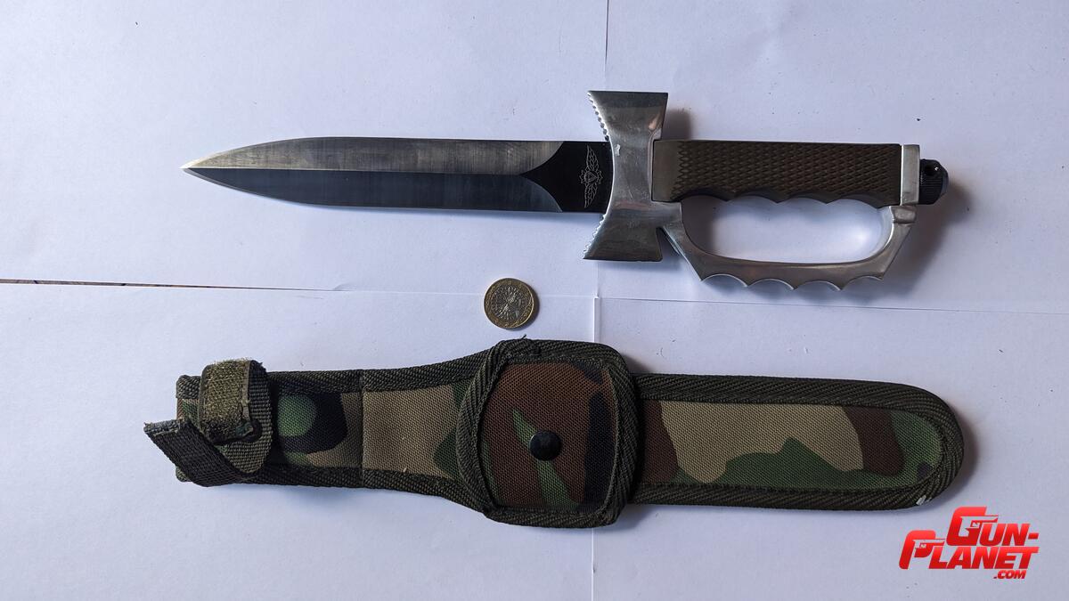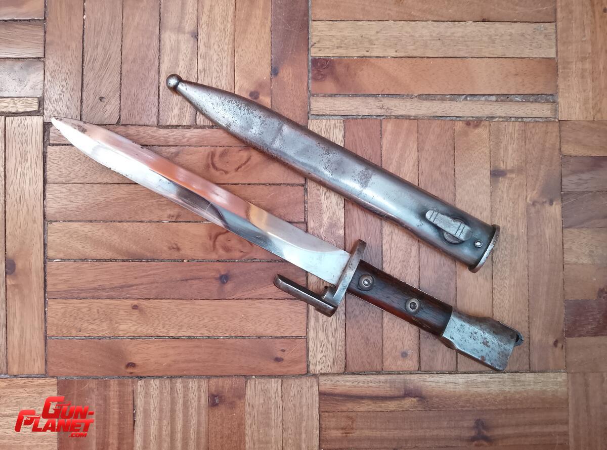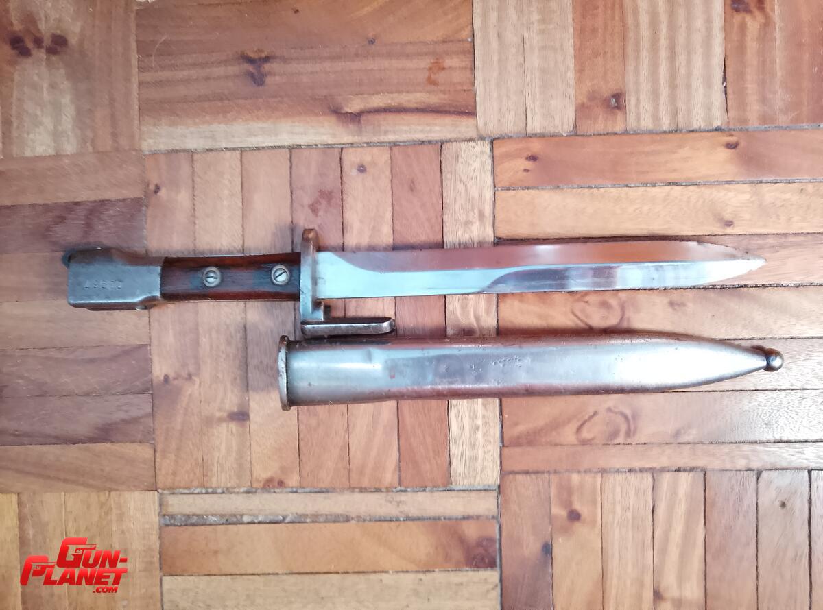 Bayoneta Fal...antigua de empuñadura de madera.. funda abollada.