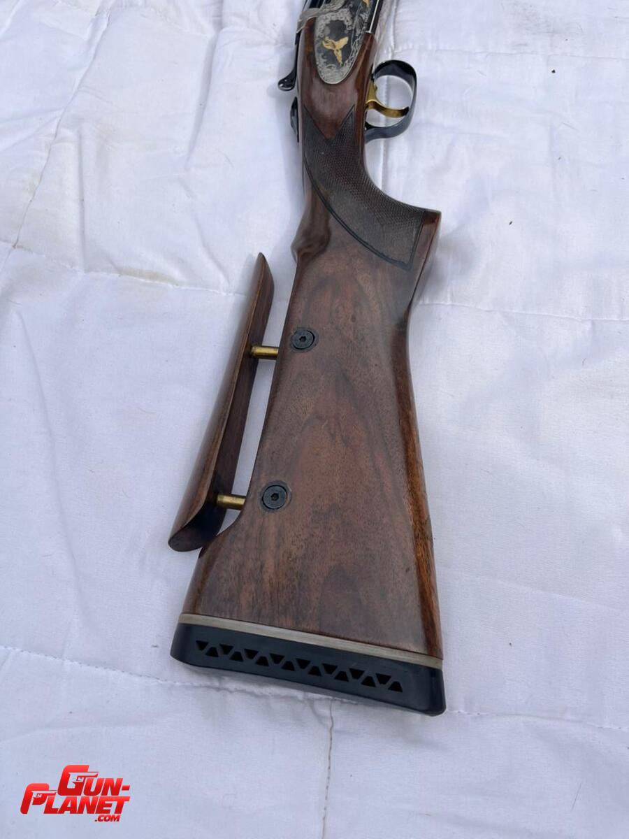 Culata de nogal seleccionado con un ovalo de bronce inserto en la misma para grabar las iniciales. Extractores automáticos. Selector de disparos. Bascula enteriza simulada grabada, confeccionada en aluminio Ergal 55 Aeronáutico. Platina enteriza, sin tornillos con 5 faisanes grabadas en dorado. Monogatillo dorado. Refinada chimaza atómica. Mirin de fibra óptica. Banda ventilada con 5 choques intercambiables Technichoque XP 50 con ajuste interno con llave. Culatín de goma.