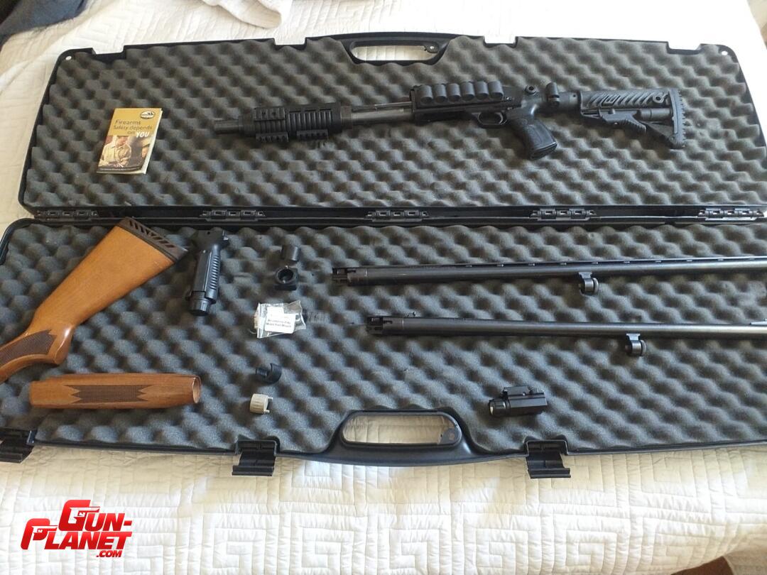 Escopeta con combo 3 caños uno de defensa , otro con estrías y otro de caza, mas equipo táctico y defensa
