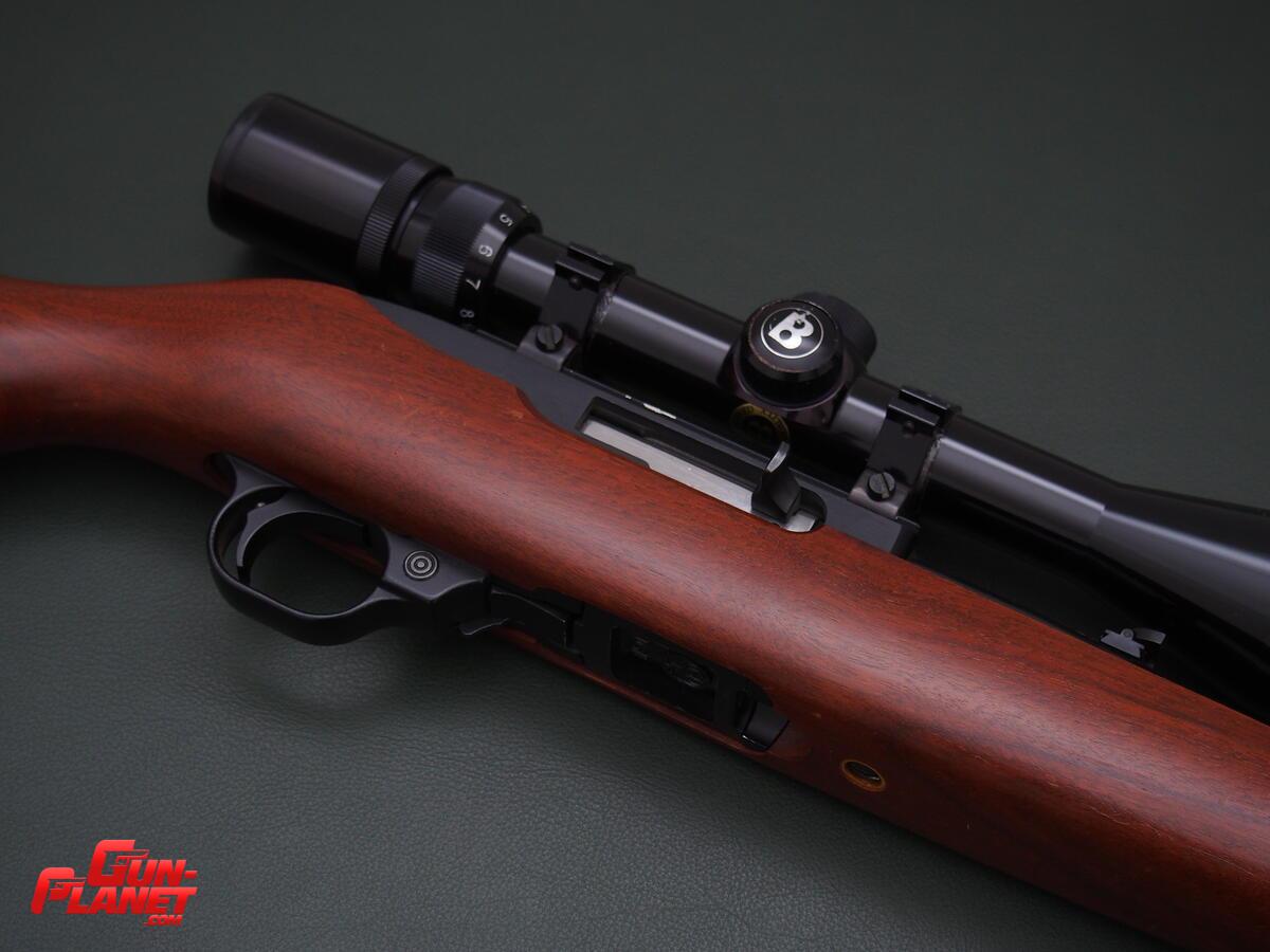 Muy buen estado, con cargador rotativo de 10 cartuchos, culata de madera, y con mira telescópica Bushnell Banner 3-9x40.