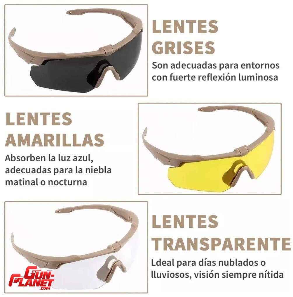 Gafa táctica con lentes intercambiables y lentiya desmontable para cristales recetados