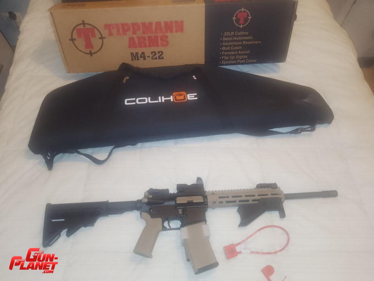 Carabina Tippman M4-22 cal. 22Lr FDE, NUEVA, con muy pocos tiros. está con dos cargadores FDE de 25 tiros, tiene seguro y botón liberador de cargador ambidiestro. también tiene mira holográfica. Se entrega con funda acolchada y caja original. Soy de Mendoza, no recibo permutas.