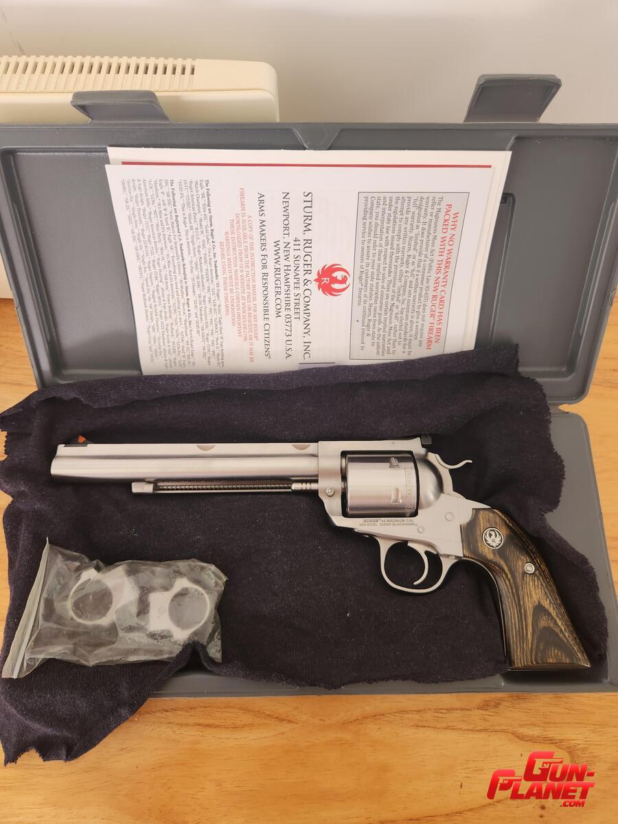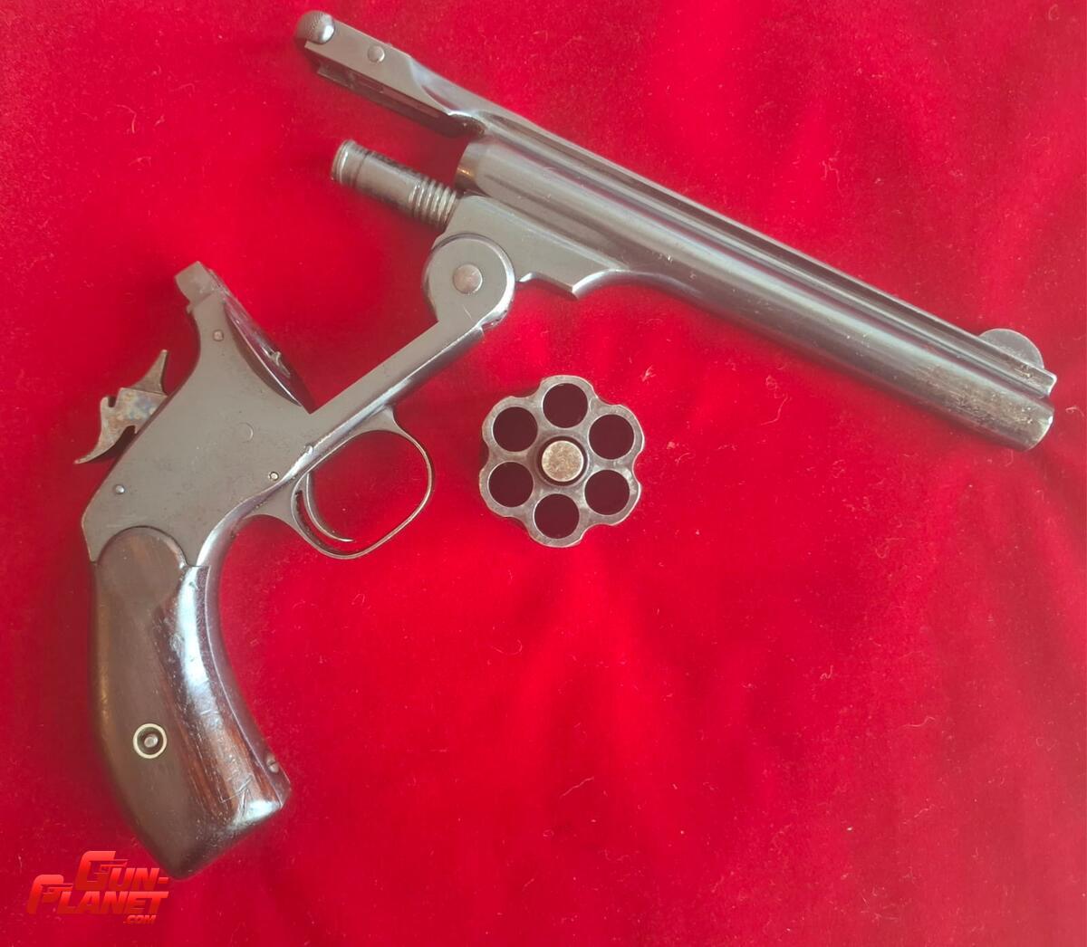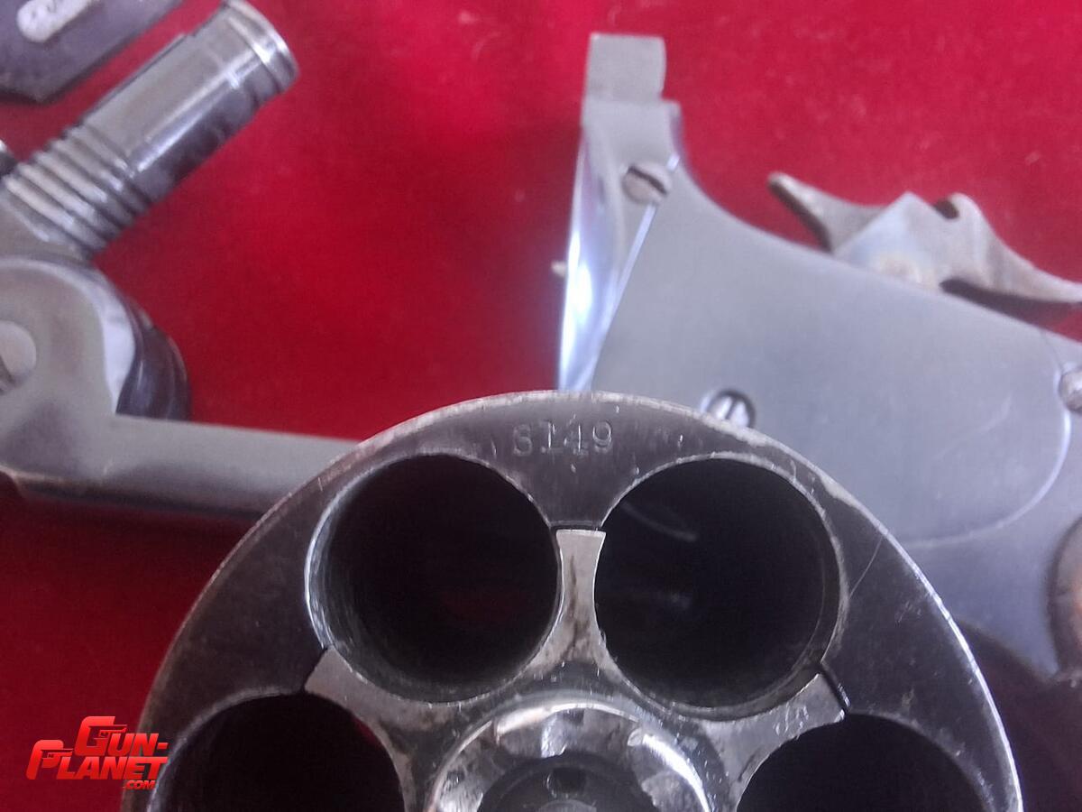 >> Hola. Ese modelo, como lo dice el aviso, es simple acción (Single Action), tiene a mi parecer un repavonado muy antiguo, pero las leyendas y los cantos están perfectos.