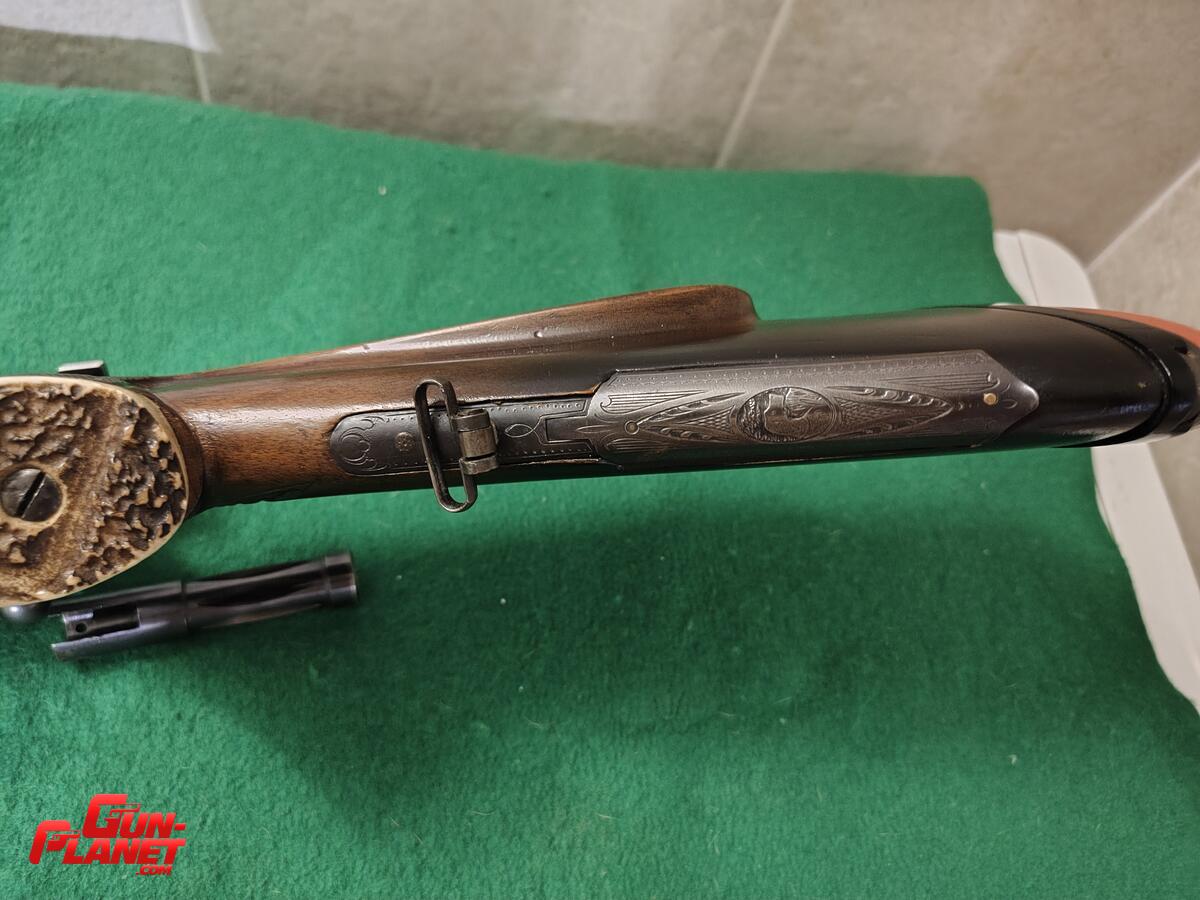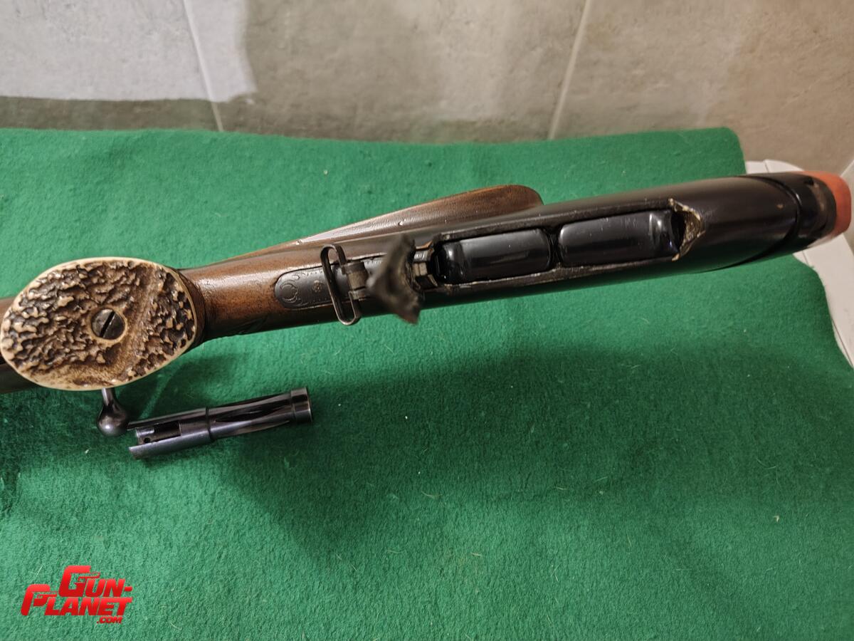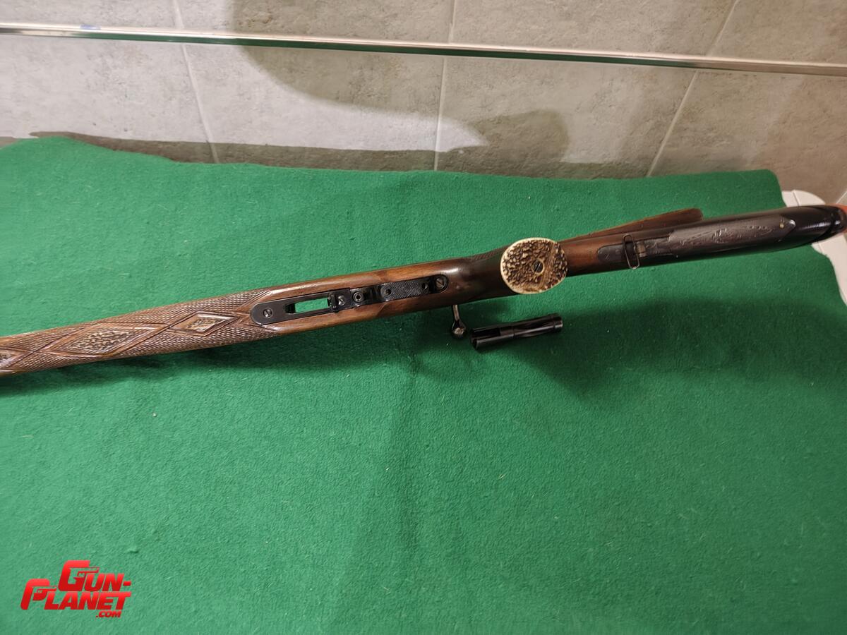 Rifle traído de Alemania y realizado por artesanos, muy buenas incrustaciones de huesos, alza regulable en distancia, gatillo reg en largo, presión y ángulo,una joya . Se entrega con la presentación del trámite