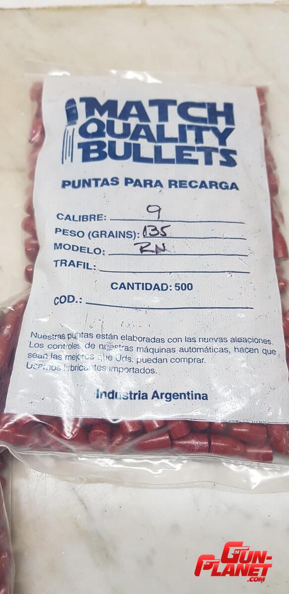 No tengo el envoltorio original. Son el sobrante de un lote de 1000 que no uso mas. podria cambiarlas por la misma cantidad de puntas de 158gn, o por puntas 9mm en cualquier peso.